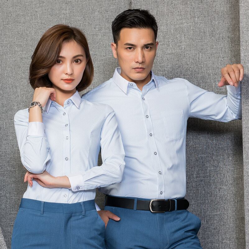【新作】【送料無料】 ホワイトカラーブルーストライプシャツ女性長袖マルウェア通勤ビジネスウェア男性と女性綿シャツカスタム刺繍ロゴ印刷-アリババ ロング レッド コットン 12b346755959913