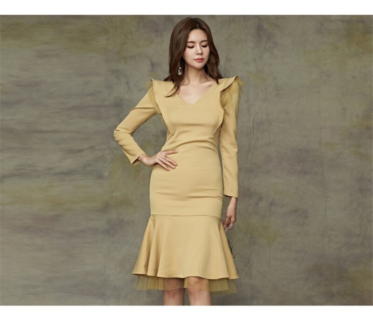 【新作】【送料無料】 2019秋冬ドレスVネックメッシュパッチワークレディースドレスフリルボディコンマーメイドドレスオフィスウェアVestidos ラッフル オータム 秋物 ウィンター 冬物 会社 学校 通勤や通学にも 12b170163034918
