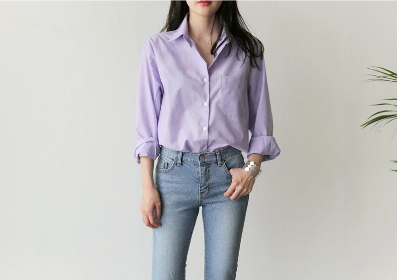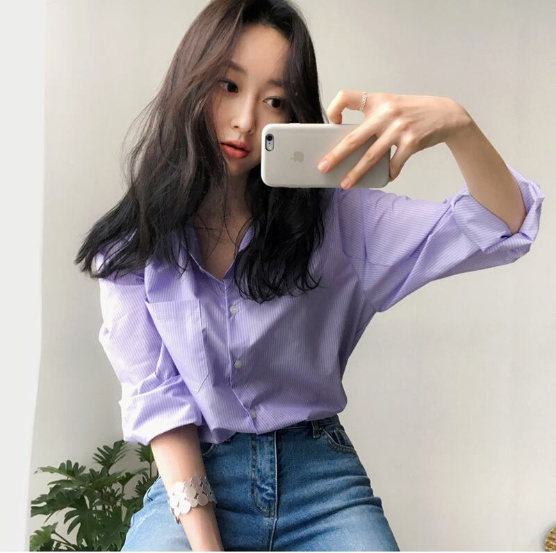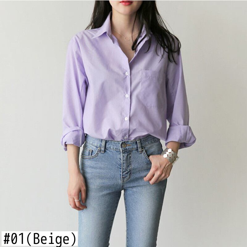 【新作】【送料無料】 春の女性のブラウスストライプターンダウンカラーオフィスレディトップスフルスリーブ女性のシャツライトパープルトップスblusas スプリング 春物 会社 学校 通勤や通学にも 12b167904658926