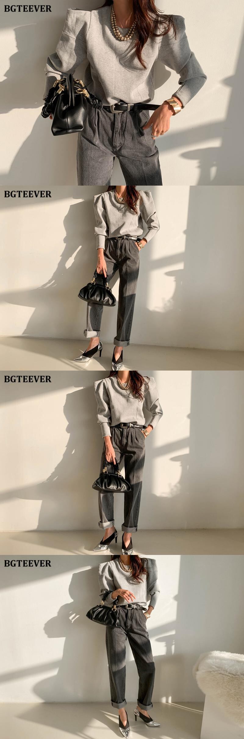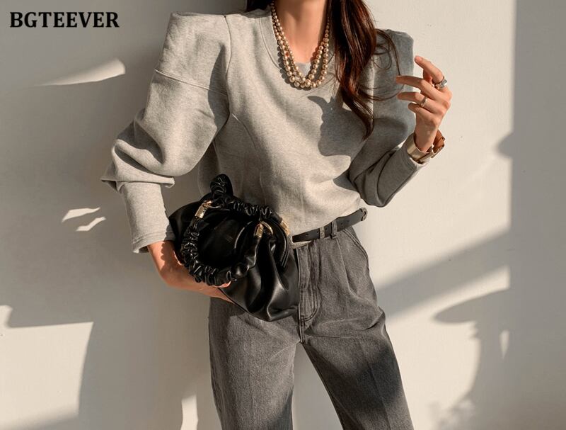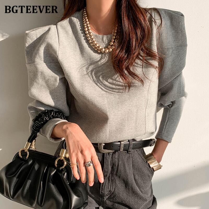 【新作】【送料無料】 BGTEEVERシックでスタイリッシュな無地の長袖女性スウェットシャツ冬の暖かいOネックルーズプルオーバートップス2021春 ロング スプリング 春物 ウィンター 冬物 ソリッドカラー 12b117773875327
