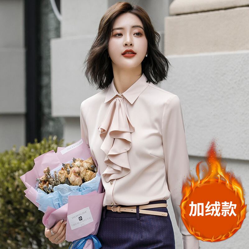 【新作】【送料無料】 2020年の新しい秋の女性のシャツサテンオールマルドレスファッション気質スリムフィットカラーフラワーシャツ女性-アリババ オータム 秋物 フラワーデザイン 12b370219656957