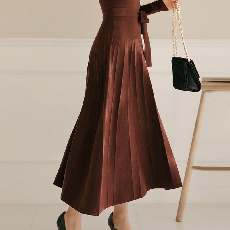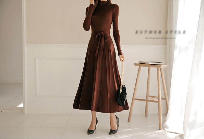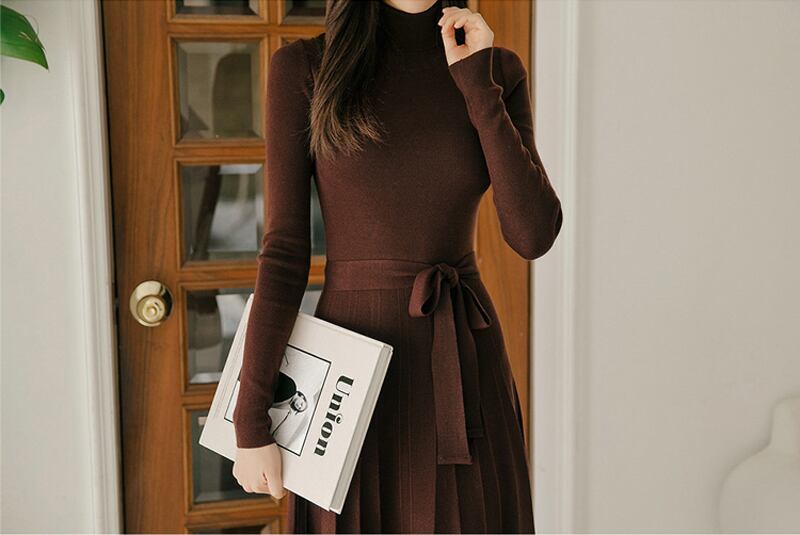 【新作】【送料無料】 冬のAラインタートルネックレディースセータードレス2018レースアップスリムウエストソリッドニットプルオーバードレスロングVestidos ウィンター 冬物 ソリッドカラー 12b131925946906