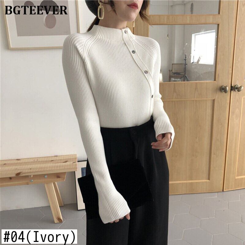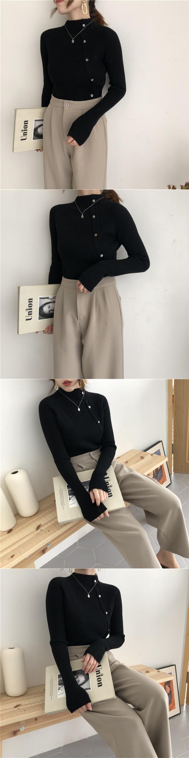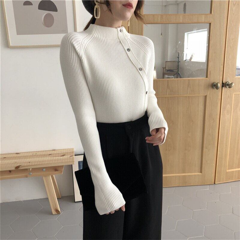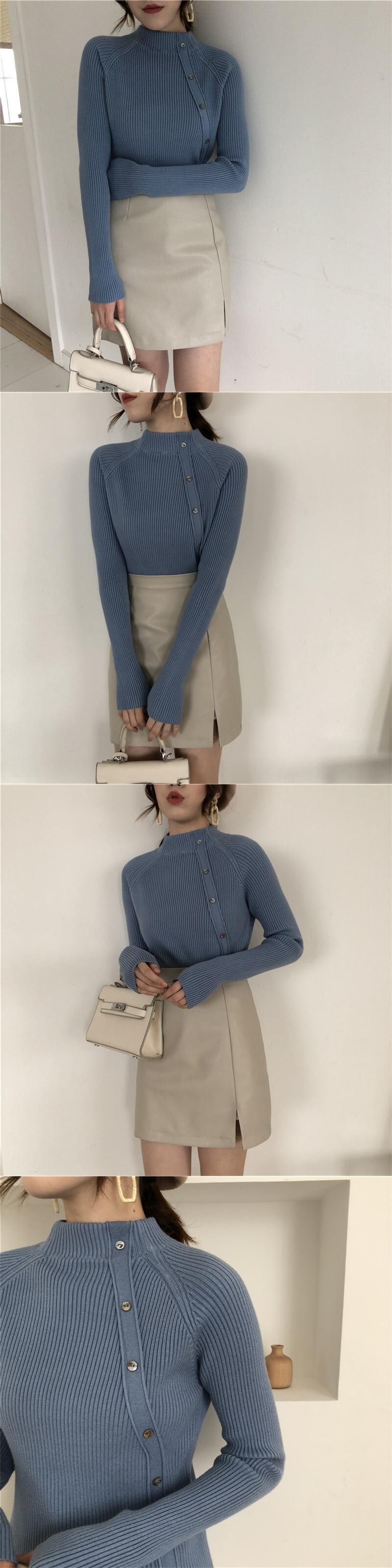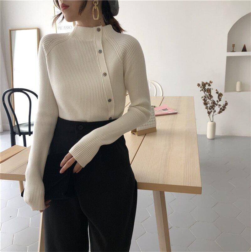 【新作】【送料無料】 ベーシック厚手のセーター女性ニットプルオーバーストレッチボタンタートルネックセーターウォームジャンパー秋冬 オータム 秋物 ウィンター 冬物 12b135010947756