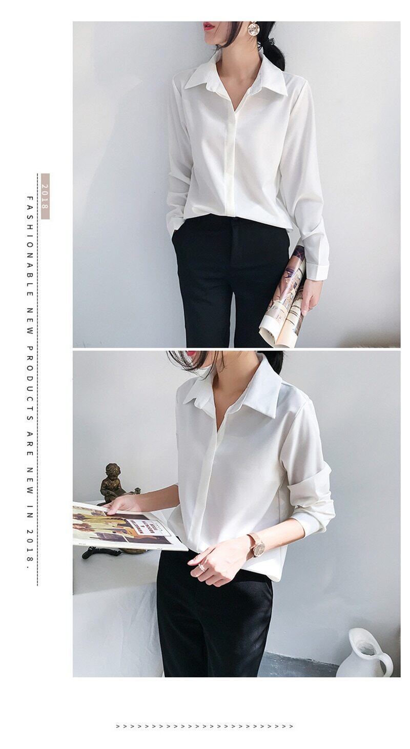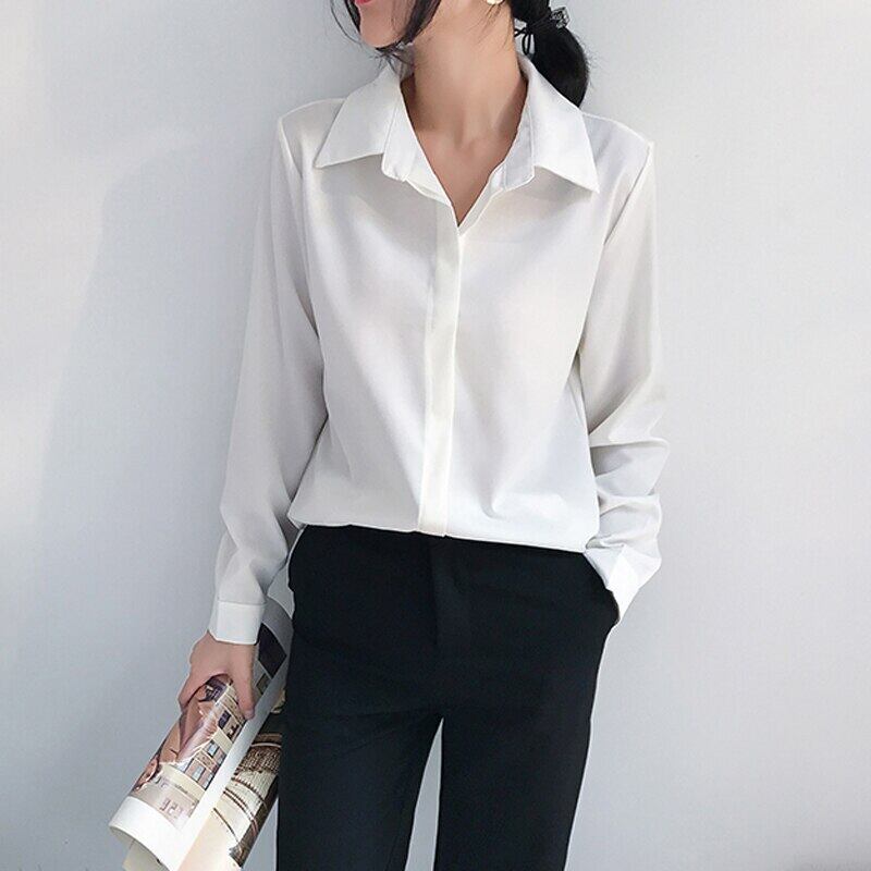 【新作】【送料無料】 秋のフルスリーブシフォンシャツ女性OLホワイトシャツ女性ブラウスラペルシングルブレストシャツトップス オータム 秋物 12b138946739407