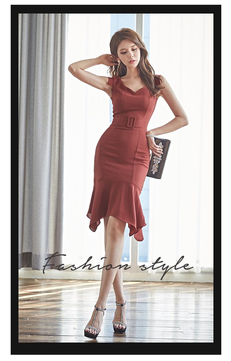 【新作】【送料無料】 セクシーなVネックスリムウエスト女性ボディコンドレスノースリーブヒップパッケージマーメイドドレス2019サマーフリルVestidos ラッフル 夏物 12b126404104468