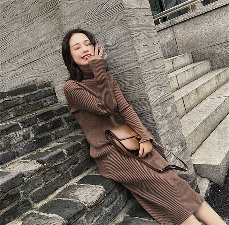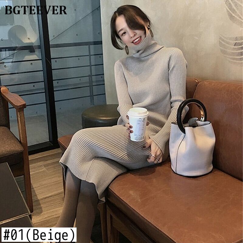 【新作】【送料無料】 秋冬厚手女性セータードレスタートルネックフルスリーブニットプルオーバーVestidosMidiニットドレス2019 オータム 秋物 ウィンター 冬物 12b116549657043