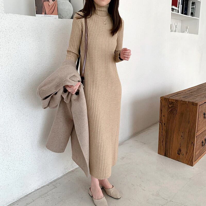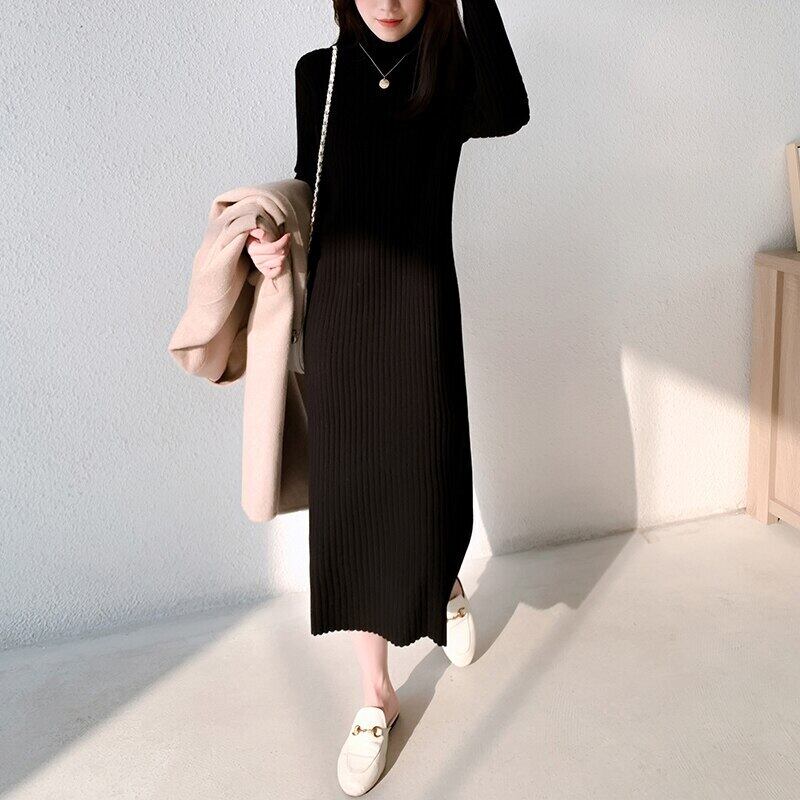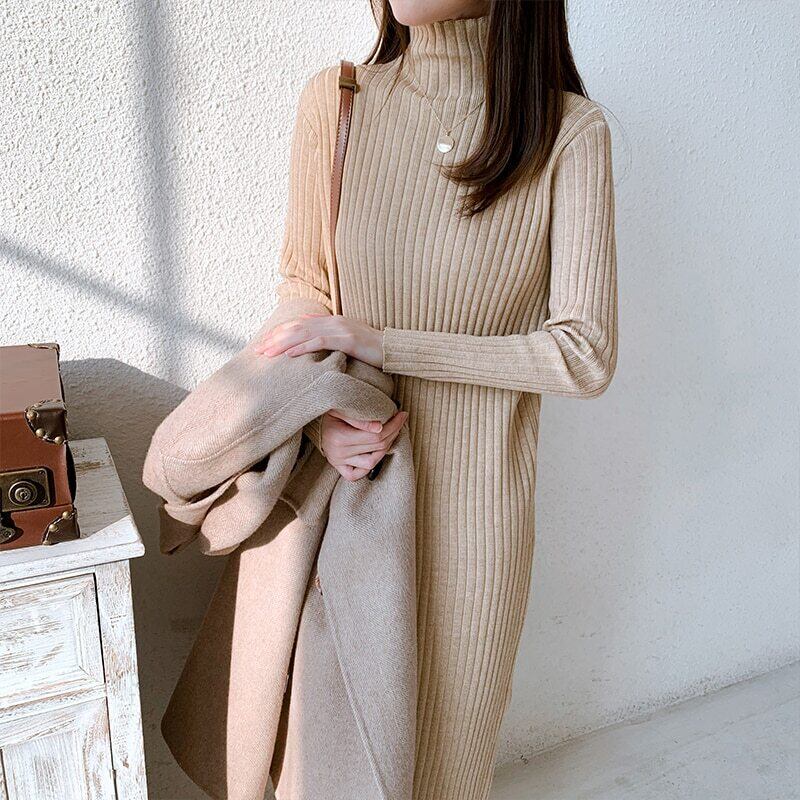 【新作】【送料無料】 厚手の暖かい秋冬のドレスタートルネックミドル丈の女性のセータードレススリムジャンパードレス オータム 秋物 ウィンター 冬物 12b13406111339
