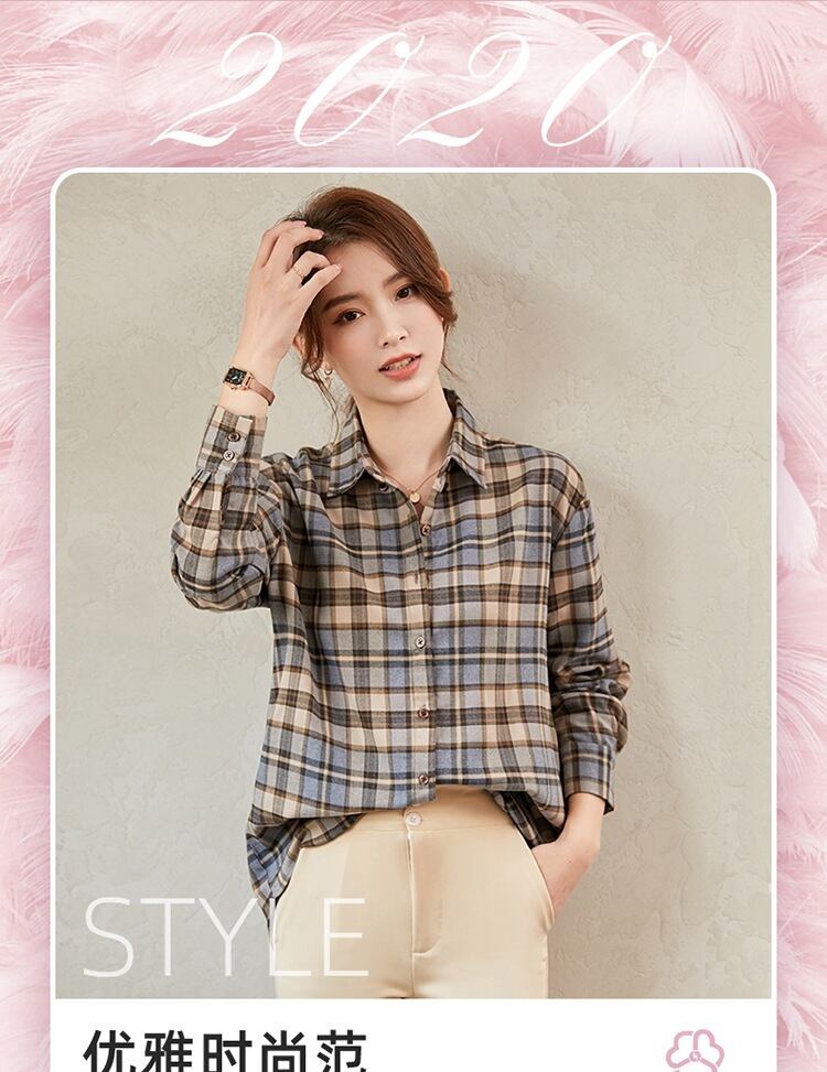 【新作】【送料無料】 Realsバージョン2020新しい格子縞のシャツの女性春と秋ルーズラージサイズ多目的気質シャツ薄いアウターウェア-アリババ 大きめサイズ スプリング 春物 オータム 秋物 12b268486884402