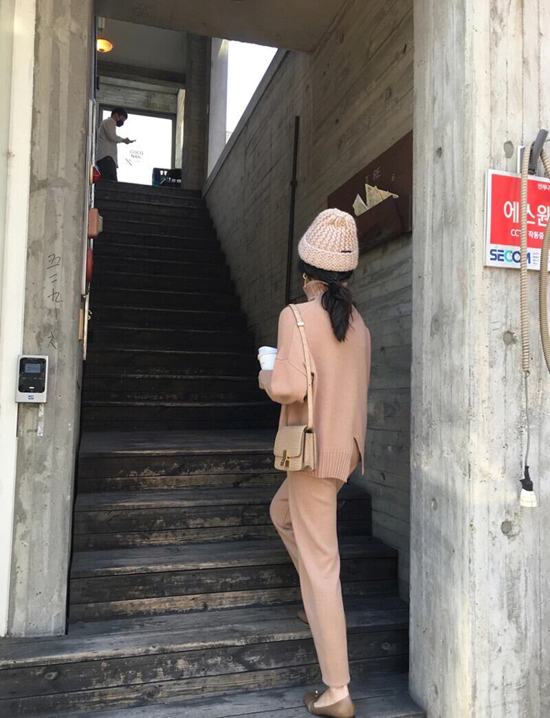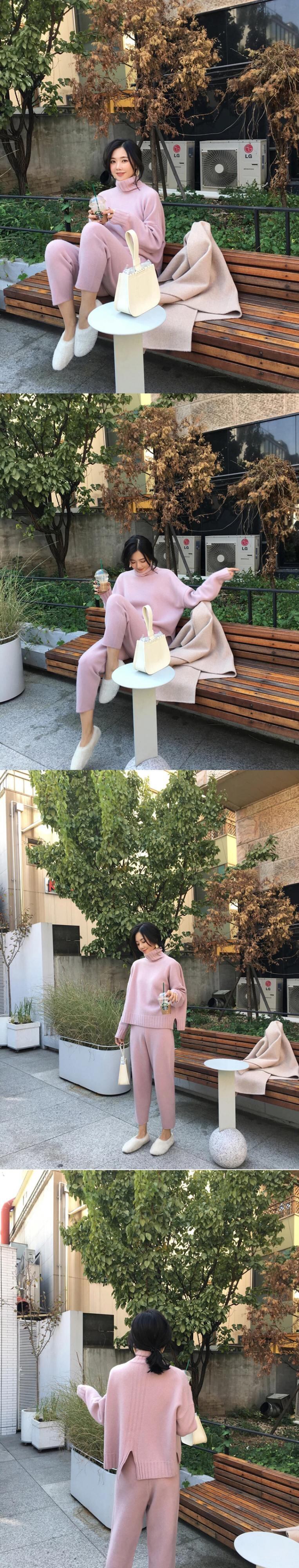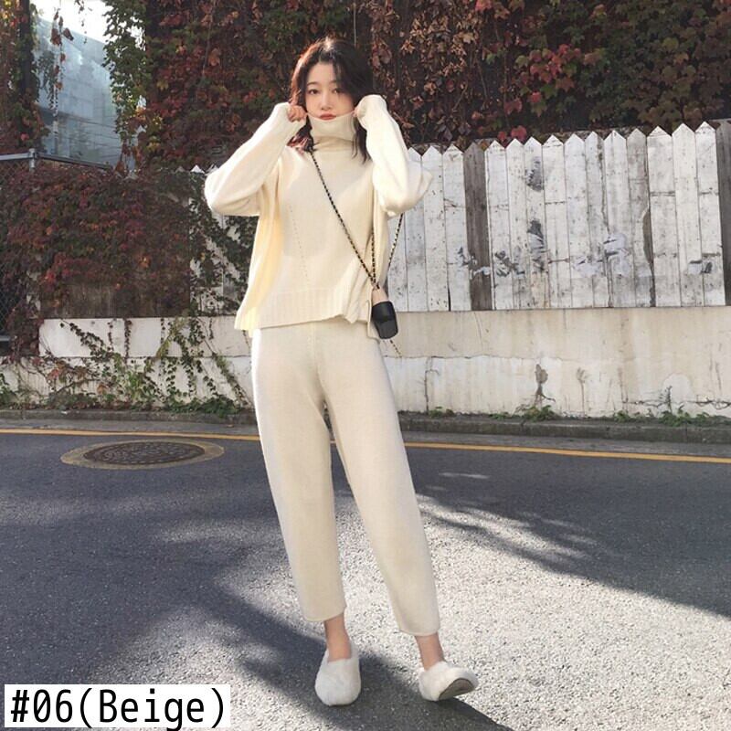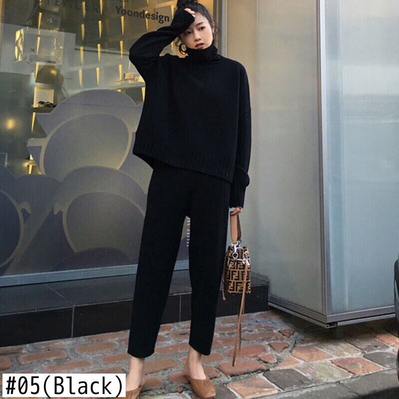【新作】【送料無料】 セーターパンツニット2点セットタートルネックプルオーバー&伸縮性ウエストパンツレディースセーターセット2020秋ニットセット エラスティック オータム 秋物 12b185880323637