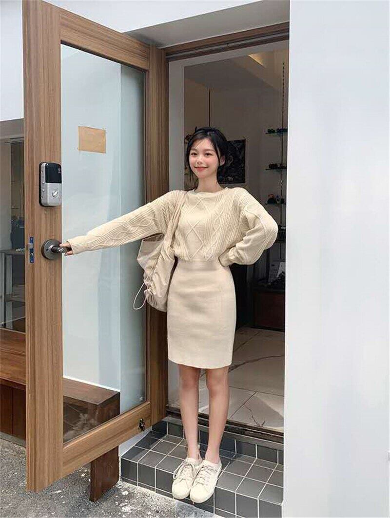 【新作】【送料無料】 冬ミディセータードレス女性長袖ベーシックニットプルオーバードレスOネックニットジャンパードレス ロング ウィンター 冬物 12b192982898011