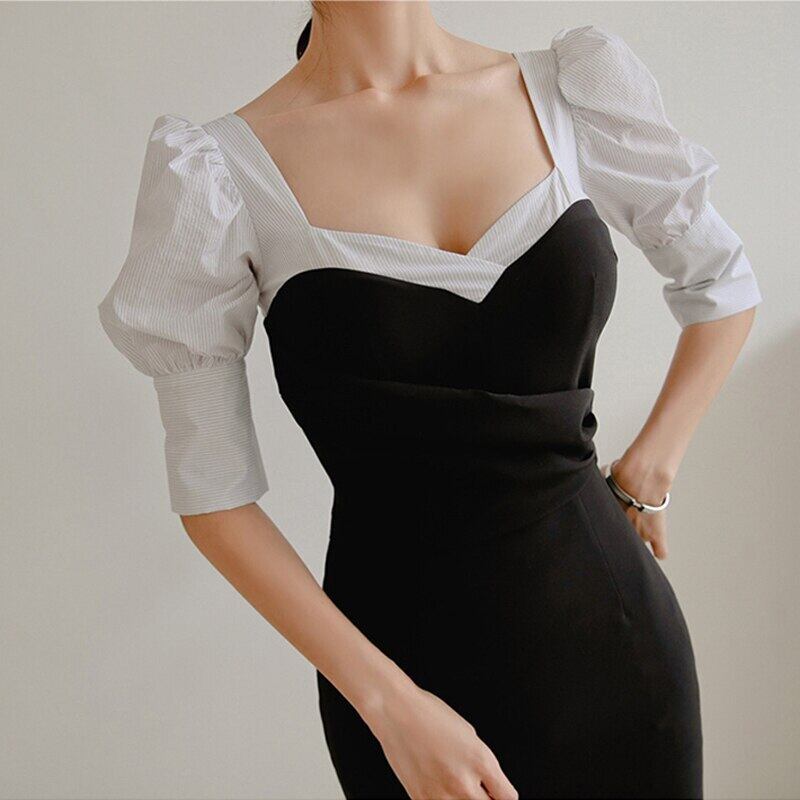 【新作】【送料無料】 BGTEEEVRヴィンテージスクエアカラーレディースドレスパッチワーク半袖ペンシルドレス2019Office Bodycon Vestidos femme ショート ハーフスリーブ フェミニン スクウェア ビンテージ 会社 学校 通勤や通学にも 12b155328763