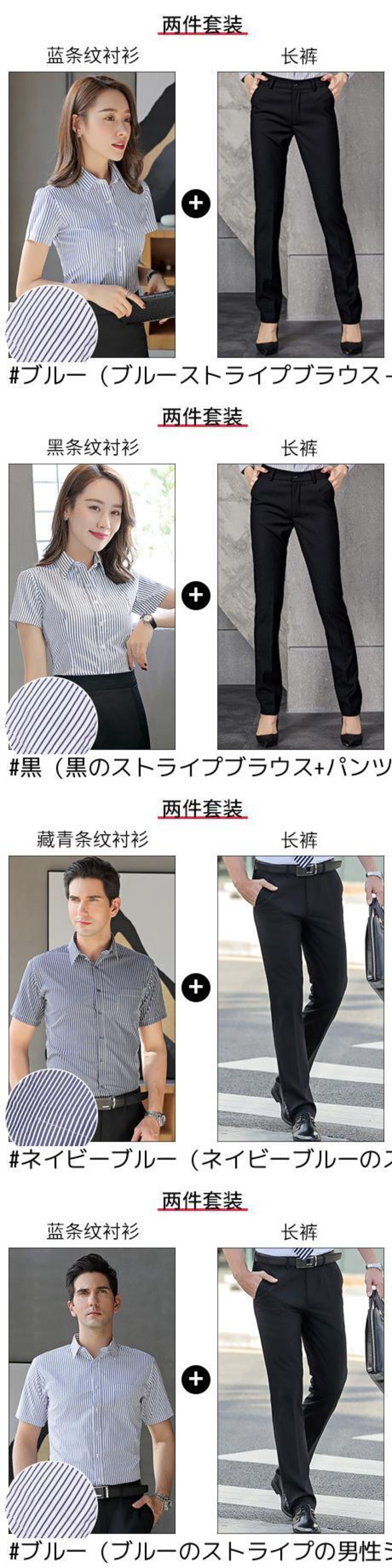 色:黒,海軍,青,ネイビー(ネイビーブルーストライプメンズシングルシャツ),ブルー(ブルーストライプメンズシングルシャツ),黒(黒のストライプのメンズシングルシャツ),ネイビーブルー(ネイビーブルーのストライプブラウス+ハーフスカート),ブルー(ブルーのストライプブラウス+ハーフスカート),黒(黒のストライプブラウス+ハーフスカート),ネイビーブルー(ネイビーブルーのストライプブラウス+パンツ),ブルー(ブルーストライプブラウス+パンツ),黒(黒のストライプブラウス+パンツ),ネイビーブルー(ネイビーブルーのストライプメンズシャツ+パンツ),ブルー(ブルーのストライプの男性シャツ+パンツ),黒(黒のストライプの男性シャツ+パンツ)