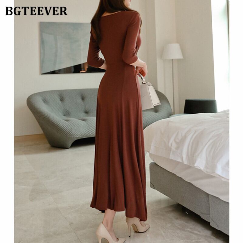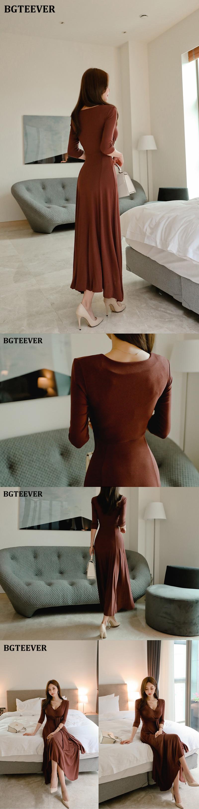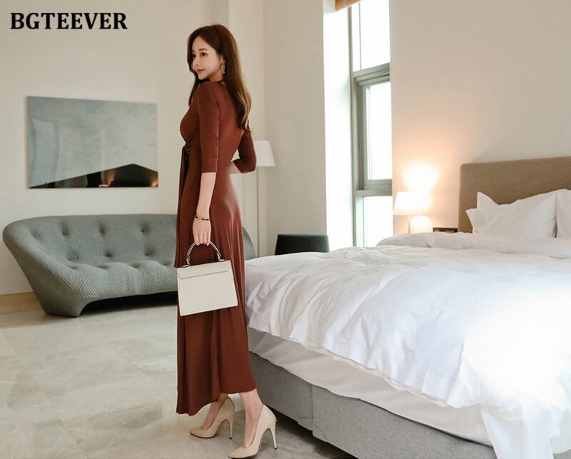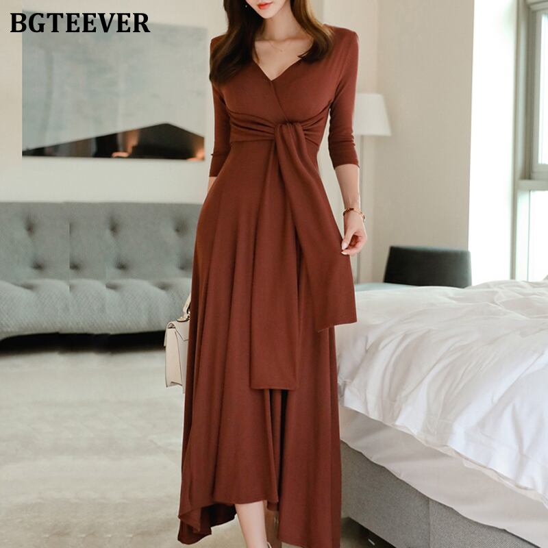 【新作】【送料無料】 BGTEEVERVネックAラインロングドレスレディース秋冬レースアップソリッドドレスOLスタイルVestidosfemme 2020 オータム 秋物 ウィンター 冬物 フェミニン ソリッドカラー 12b190412379725