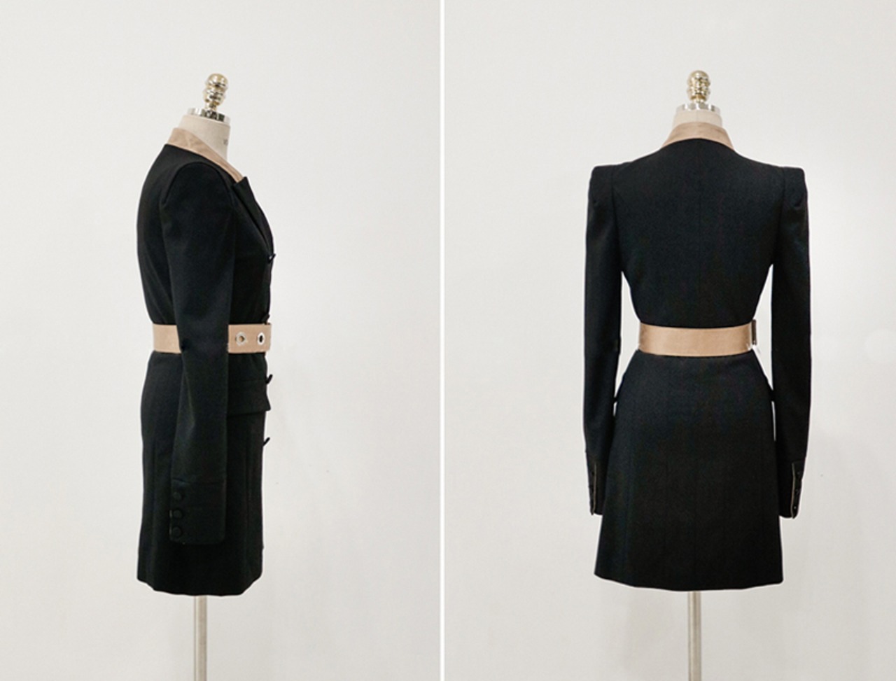 【新作】【送料無料】 秋のVネックダブルブレスト女性ブレザードレスフルサッシOLスタイルドレスウエストボディコンvestidosfemme 2018 オータム 秋物 フェミニン 12b178802305779