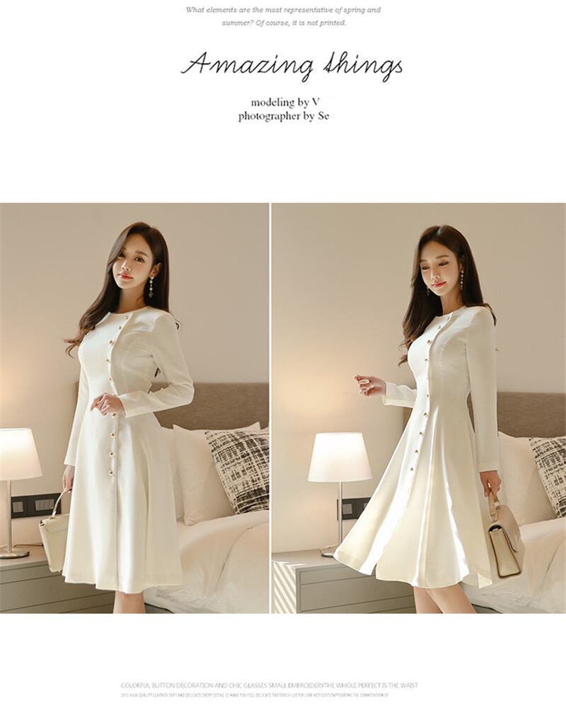 【新作】【送料無料】 ホワイトシングルブレストAラインレディースドレスOネックウエストフルスリーブパーティードレス年春 スプリング 春物 12b142926756165