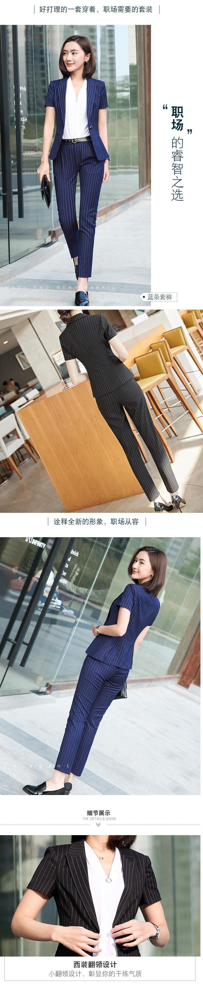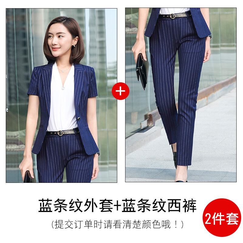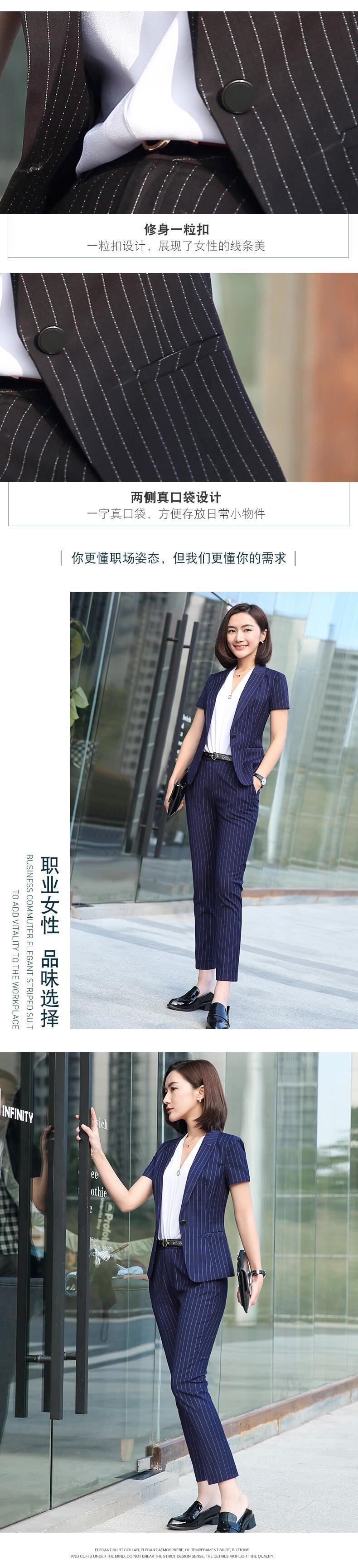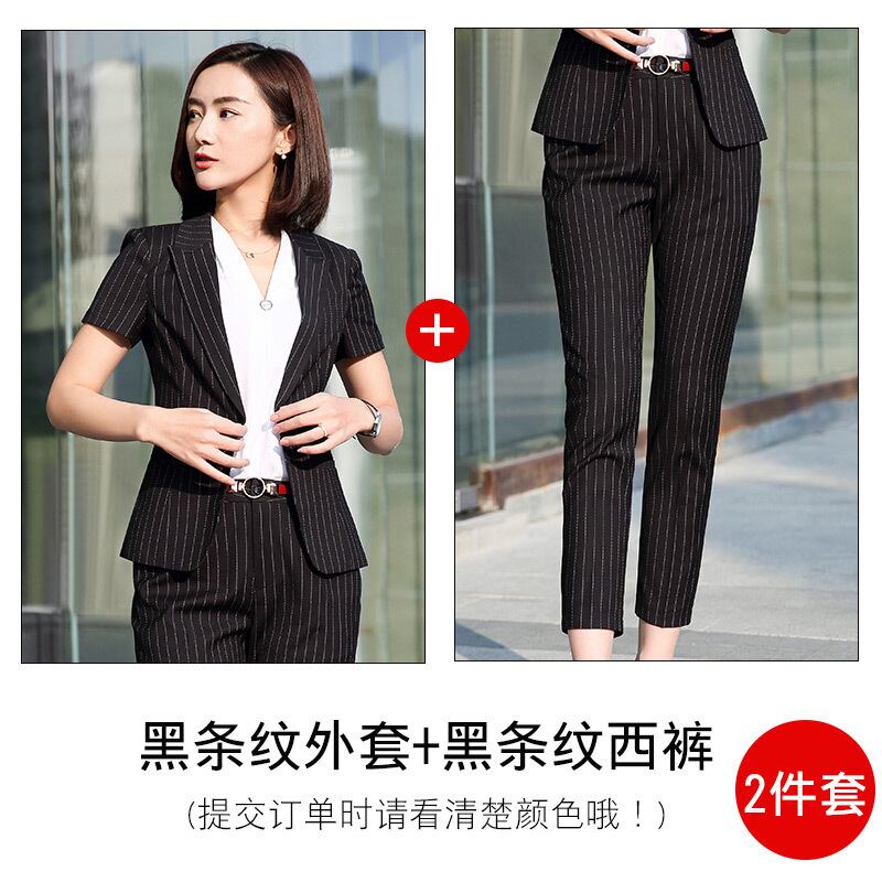 【新作】【送料無料】 ウールプロウェアレディーススーツ2019新しいファッションストライプ半袖マルドレス女子大学生インタビュースーツOL-アリババ 12b346051839559