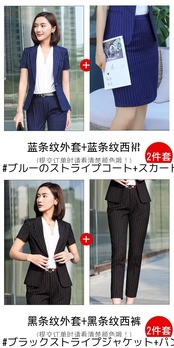 色:黒のストライプコート+スカートツーピーススーツ,ブルーのストライプコート+スカートツーピーススーツ,ブラックストライプジャケット+パンツ2点セット,ブルーストライプコート+パンツ2点セット,ブラックストライプジャケット+パンツ+シャツ3点セット,ブルーストライプジャケット+パンツ+シャツ3点セット,ブラックストライプコート+スカート+シャツ3点セット,ブルーストライプジャケット+スカート+シャツ3点セット
