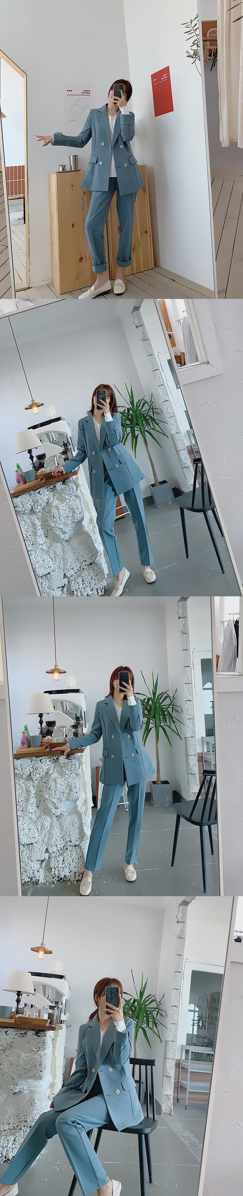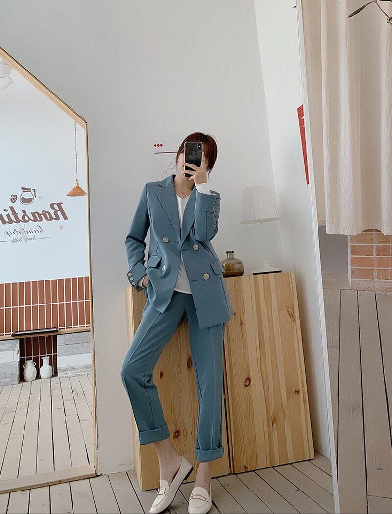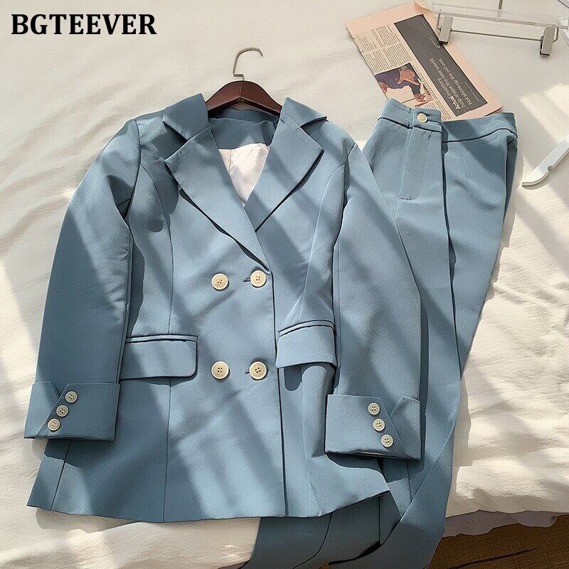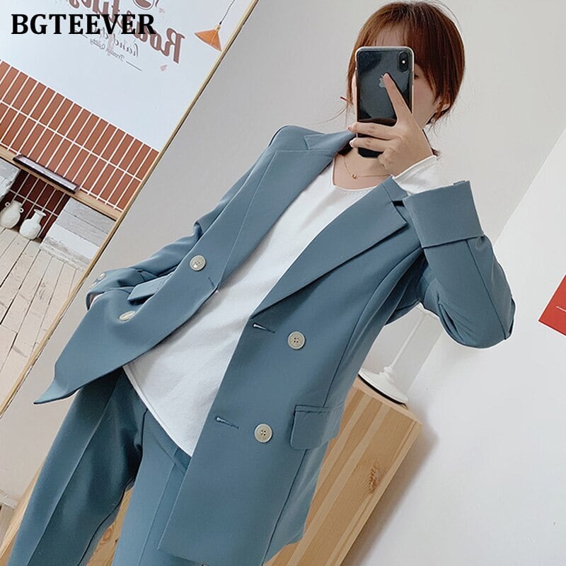 【新作】【送料無料】 BGTEEVERシックブルーレディースパンツスーツダブルブレストジャケット&ペンシルパンツレディースブレザースーツセットワークウェアパンツスーツ2019 12b135850029198
