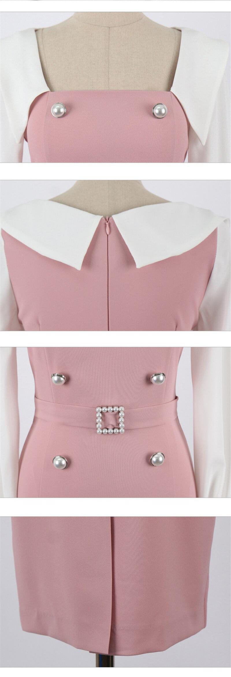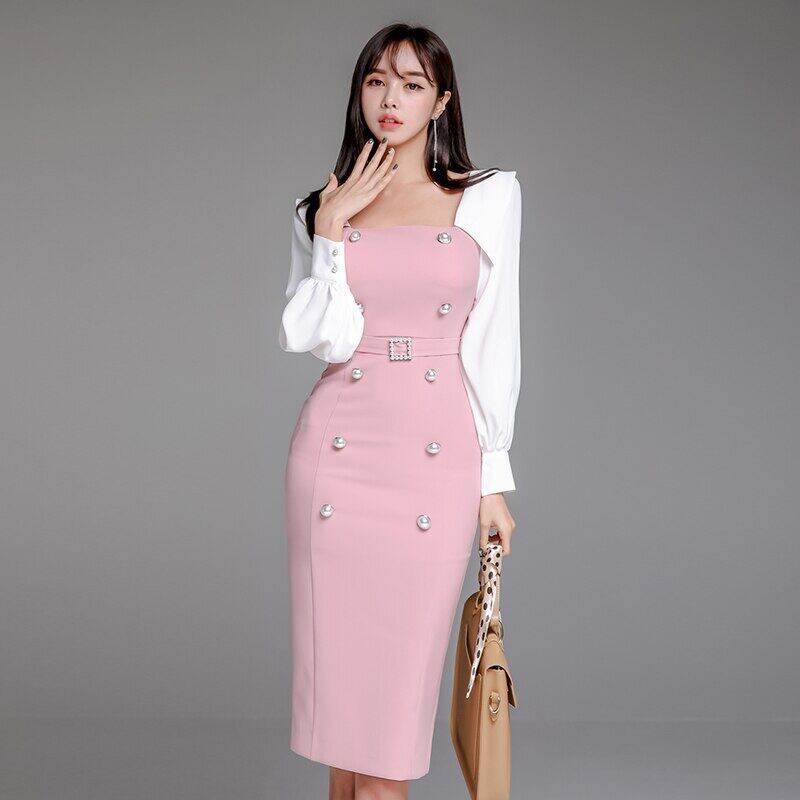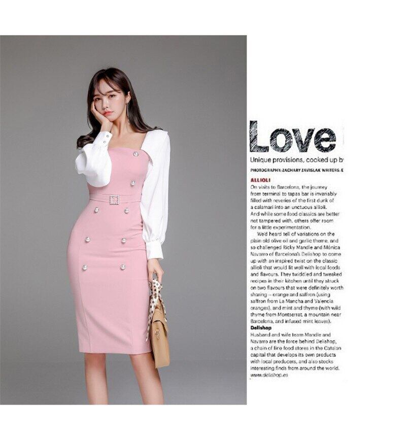 【新作】【送料無料】 BGTEEVERスクエアカラーダブルブレストレディースドレスランタンスリーブベルトドレス2019膝丈Vestidosfemme ハーネス フェミニン スクウェア 12b13334358746