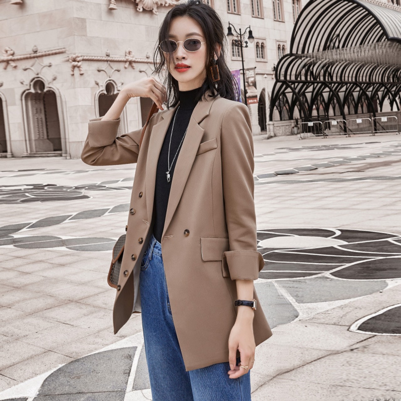 【新作】【送料無料】 本物の秋冬ミドル丈スモールスーツジャケットレディース2020新しいプロの気質プラスサイズのスーツジャケット-アリババ 大きめサイズ オータム 秋物 ウィンター 冬物 12b244228932065