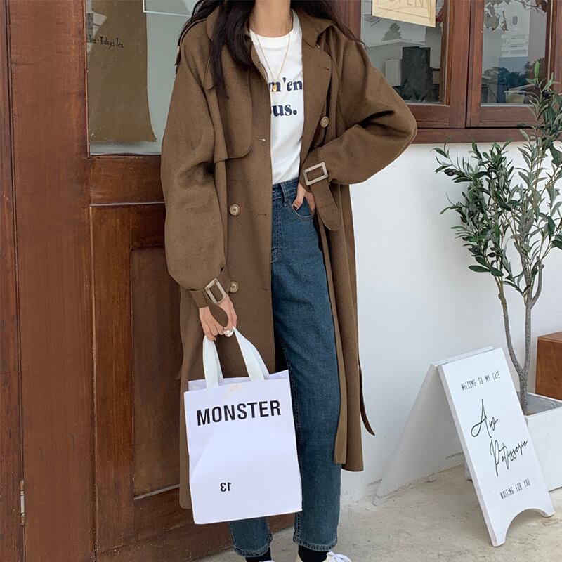 【新作】【送料無料】 BGTEEVER冬シングルブレストレースアップウールコート女性ターンダウンカラーポケットオーバーコートヴィンテージブレンドコート ウィンター 冬物 ビンテージ 12b165155700522