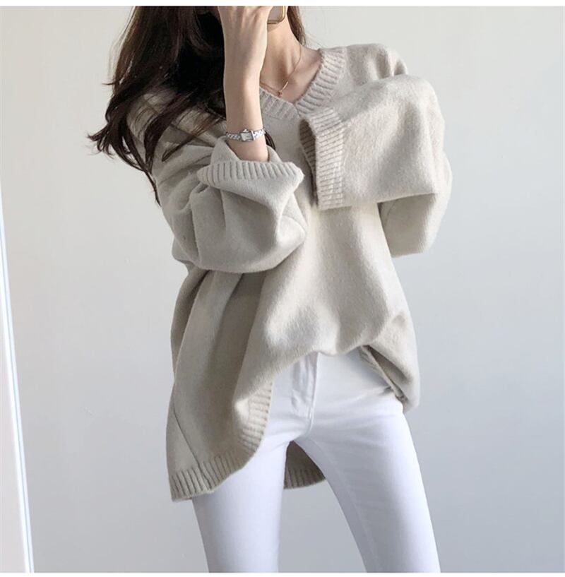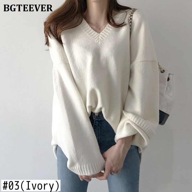 【新作】【送料無料】 BGTEEVER秋冬セーター女性Vネックルーズニットセーターニットプルオーバージャンパー2020ニットトップス オータム 秋物 ウィンター 冬物 12b193797998079