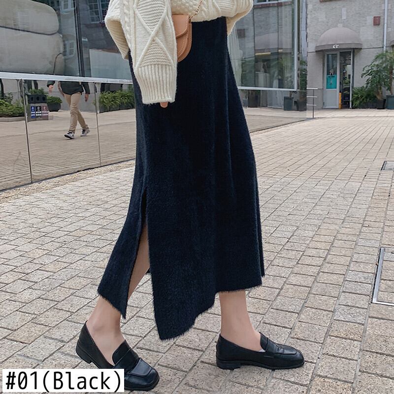 【新作】【送料無料】 春厚め伸縮性ウエストレディーススカートストレートサイドスプリットルーズミドル丈スカートウォーム エラスティック スプリング 春物 12b175154203800