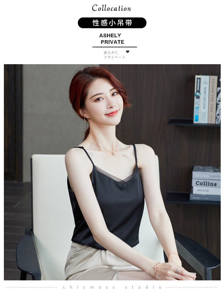 【新作】【送料無料】 本物のシルクキャミソールベスト、気質ルーズオールマッチシャツセクシースウィートVネックノースリーブトップアウター-Alibaba 大人ガーリー キュート カジュアル 12b265546800510