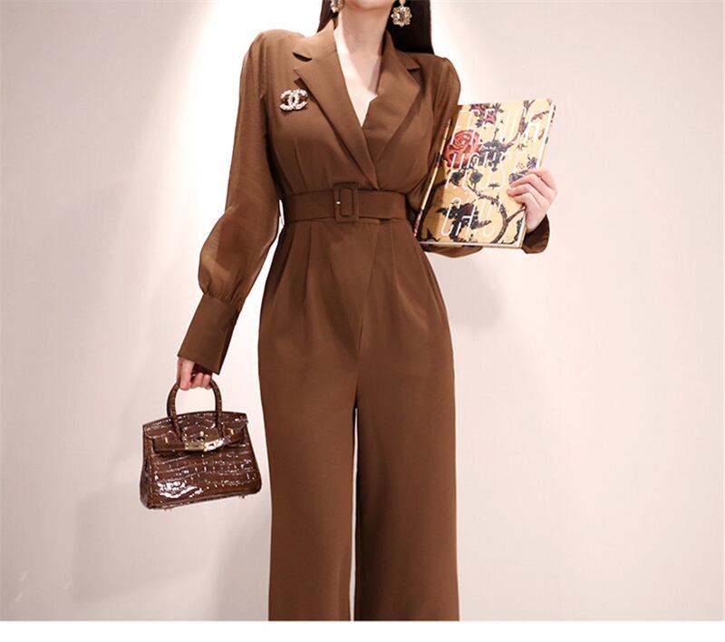 【新作】【送料無料】 BGTEEVERノッチカラービジネスウェアジャンプスーツ女性スリムフィットベルトロンパースOLスタイルルーズプレイスーツ2020 ハーネス 12b121864834023