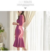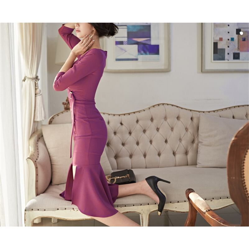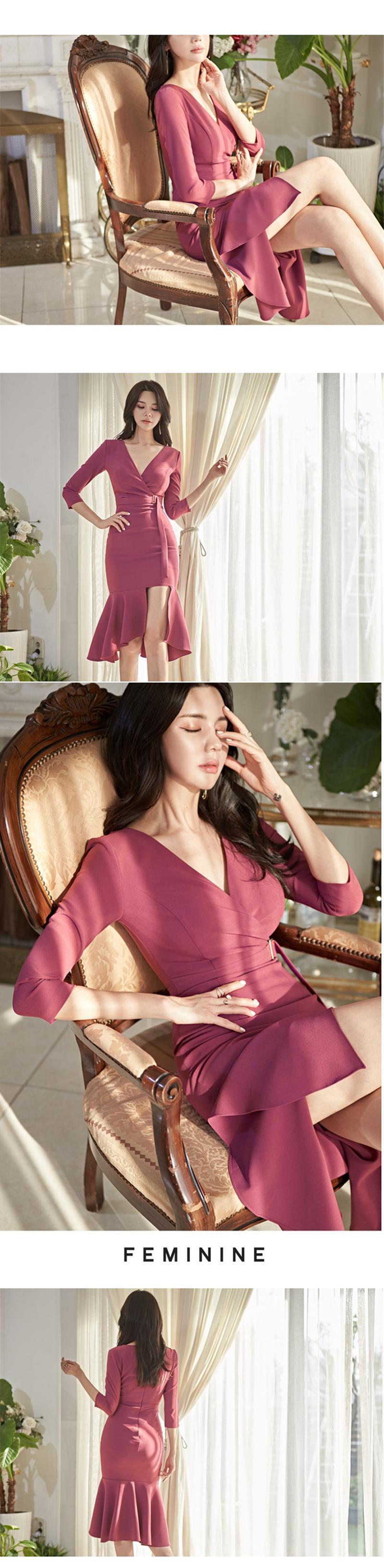 【新作】【送料無料】 春のオフィスウェアシースボディコンドレスVネック女性ペンシルドレススリムサッシ不規則な裾OLVestidos スプリング 春物 会社 学校 通勤や通学にも 12b113511955105