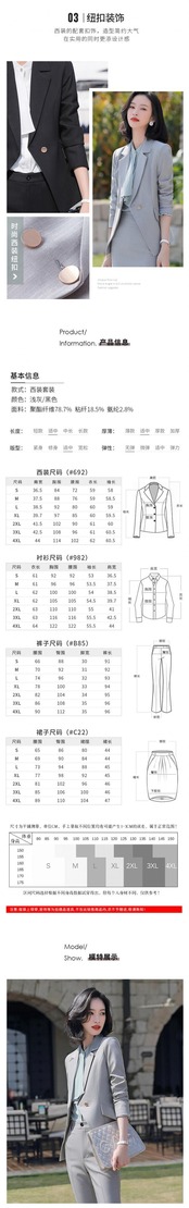 色:黒,ライトグレー,黒のスーツ+黒のズボンB85,ライトグレーのスーツ+グレーのパンツB85,黒のスーツ+黒のスカートC22,ライトグレーのスーツ+グレーのスカートC22,黒のスーツ+黒のズボンB85+白のシャツ982,黒のスーツ+黒のスカートC22+白のシャツ982,ライトグレーのスーツ+グレーのパンツB85+ライトグリーンのシャツ982,ライトグレーのスーツ+グレーのスカートC22+ライトグリーンのシャツ982,黒のスーツ+スカートC22+黒のズボンB85+シャツ982,グレーのスーツ+グレーのスカートC22+グレーのパンツB85+ライトグリーンのシャツ982