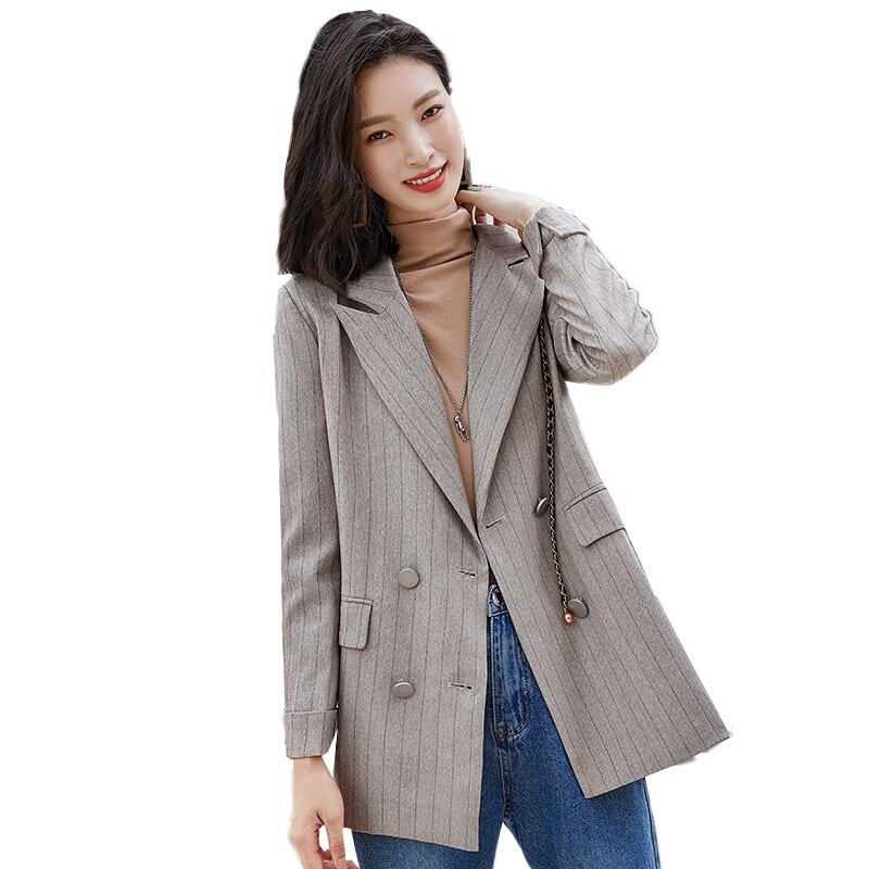 【新作】【送料無料】 Real s2020新しいファッションストライプスタイルのスーツジャケットデザインルーズラージサイズトレンディなスモールスーツジャケット女性-アリババ 大きめサイズ 12b2649604231
