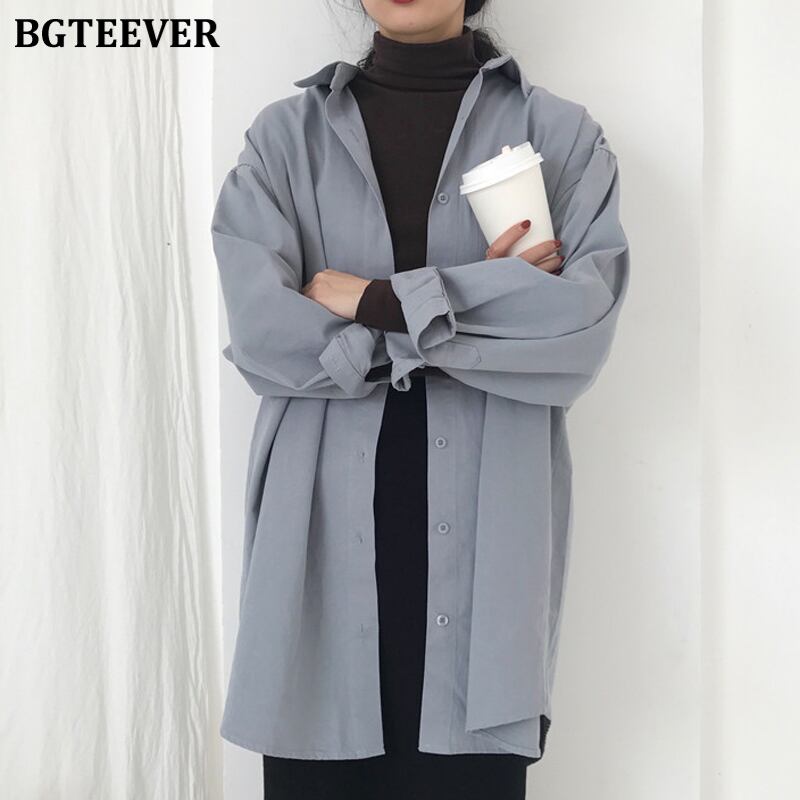 【新作】【送料無料】 BGTEEVERターンダウンネックレディースブラウスシャツ長袖シングルブレストルーズシャツトップス2020春 ロング スプリング 春物 12b173839461646
