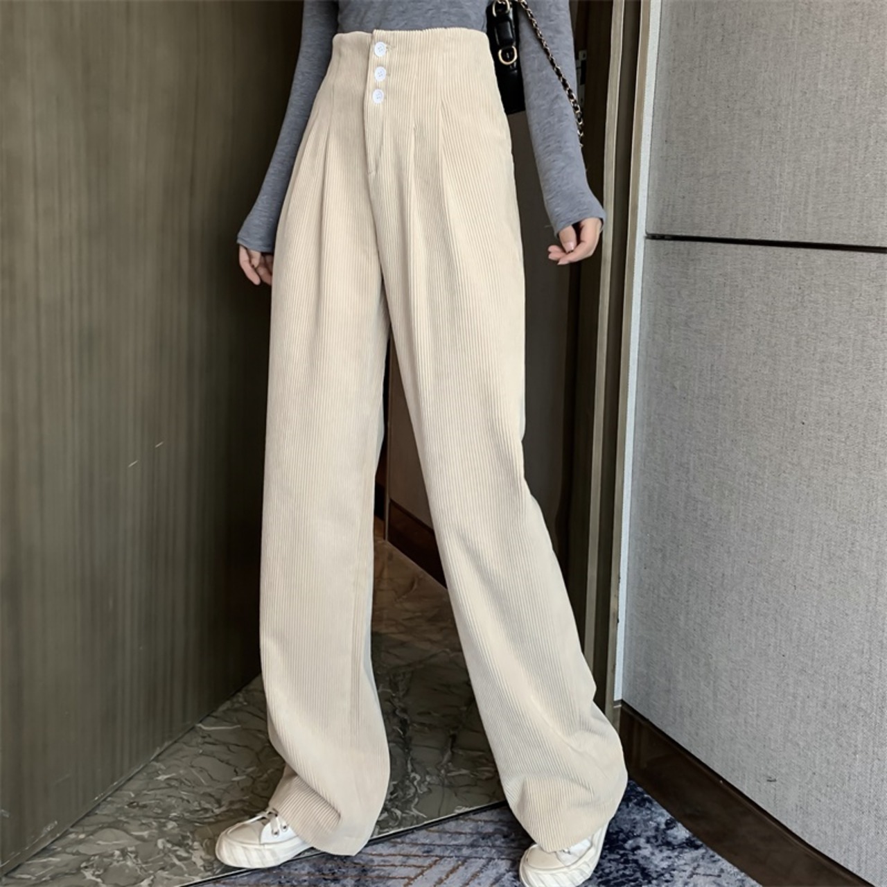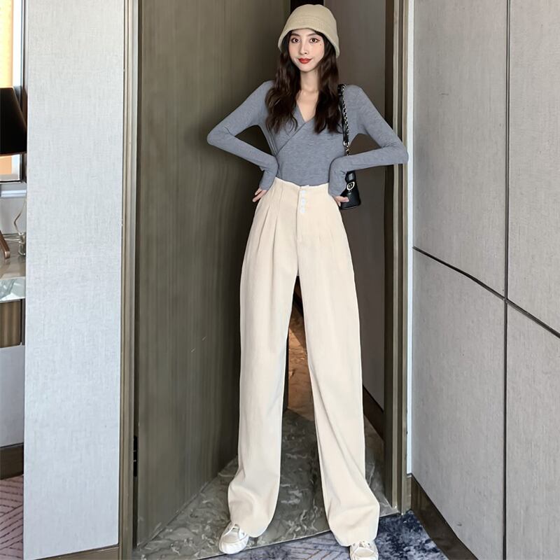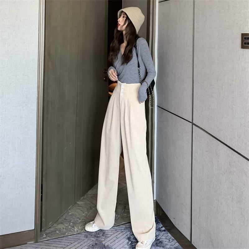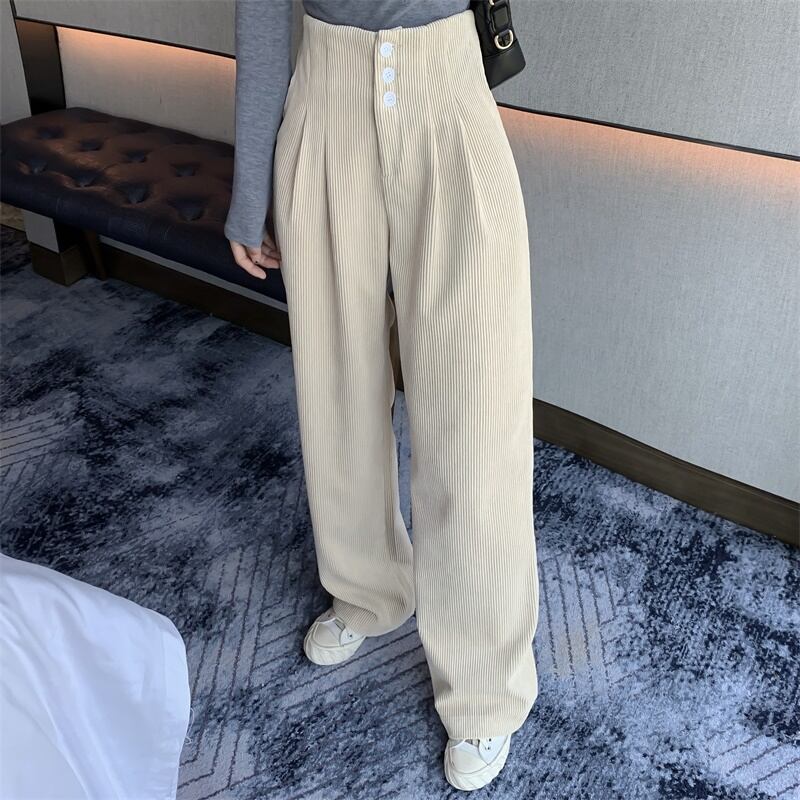 【新作】【送料無料】 BGTEEVERシックンウィメンズコーデュロイパンツ2020スプリングウエストボタンワイドレッグパンツフロアレングスロングパンツ 春物 12b122467613449