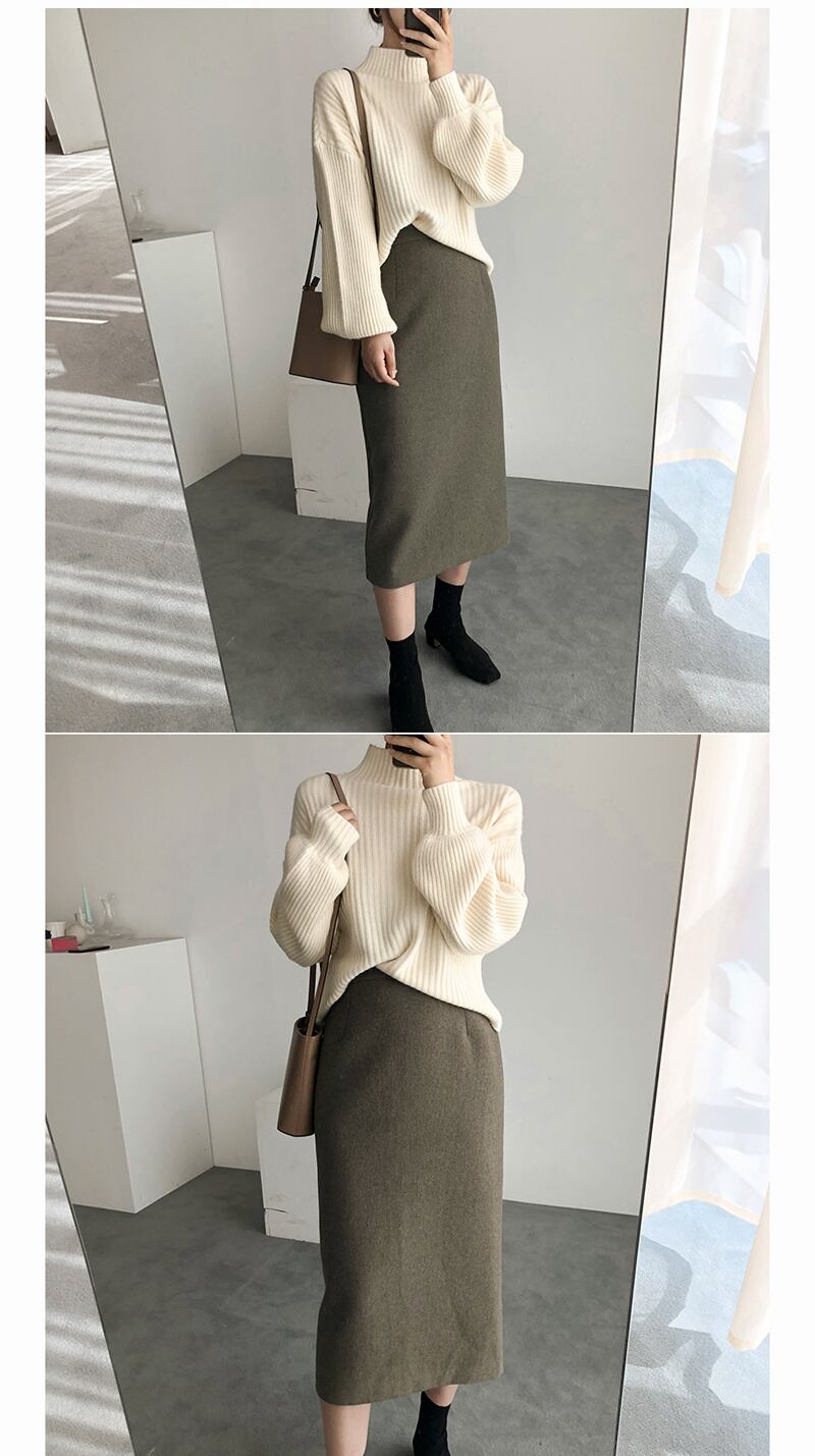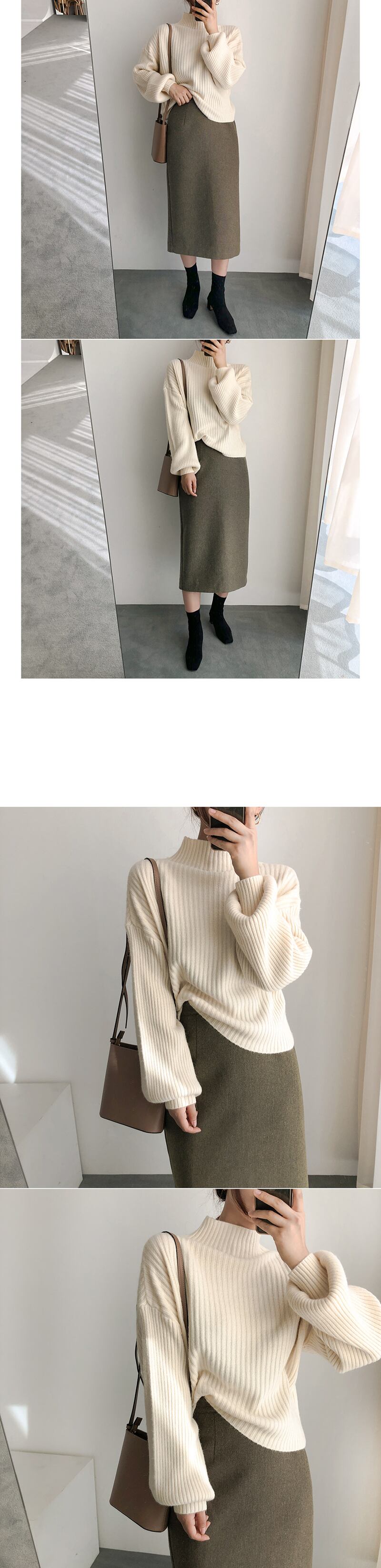 【新作】【送料無料】 ランタンスリーブ冬セーター女性タートルネックルーズニットプルオーバージャンパーストライプニットトップス ウィンター 冬物 12b137276165479