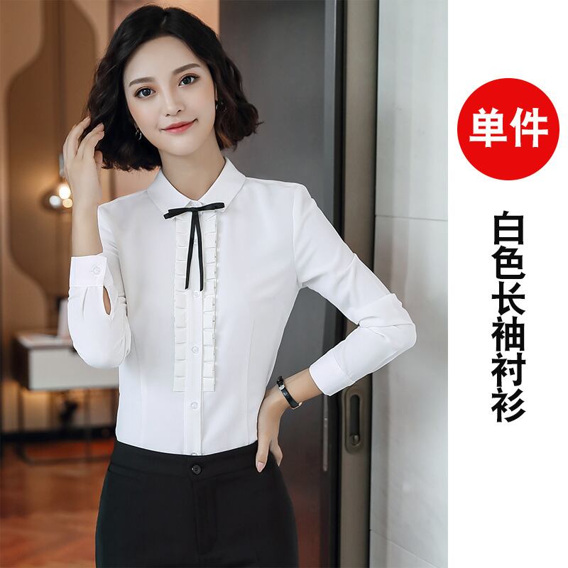 【新作】【送料無料】 Dinifeiの新しいプロの服の女性の長袖2020年秋の白いシャツ女性のオーバーオール作業服トップボトミングシャツ-アリババ ロング ホワイト オータム 秋物 12b358002928770
