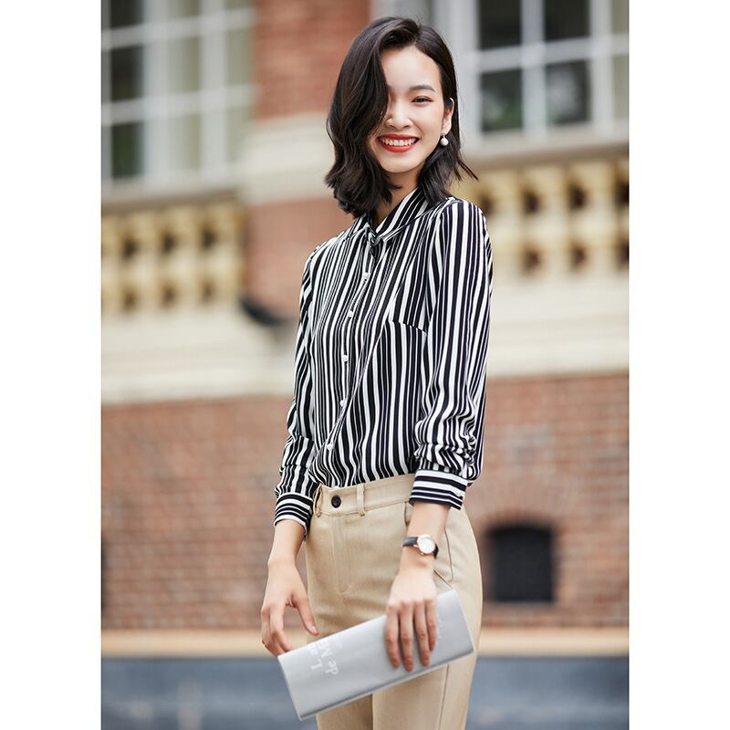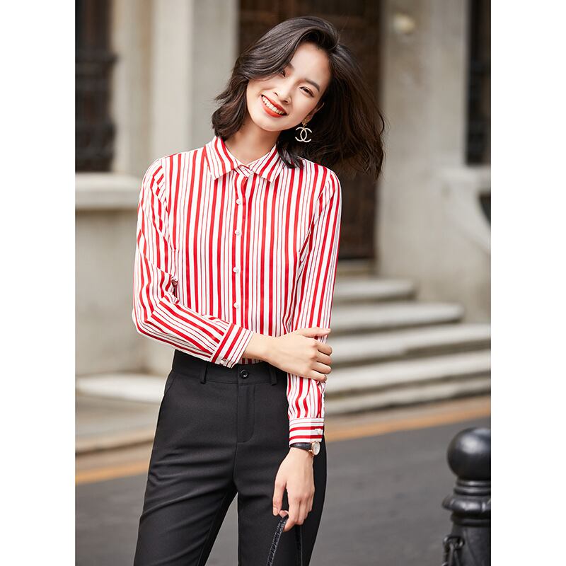 【新作】【送料無料】 Real s2020新しいストライプシャツ女性デザインセンスニッチ秋冬ストライプシャツアウターウェアファッショントレンド-アリババ オータム 秋物 ウィンター 冬物 12b296927568247