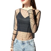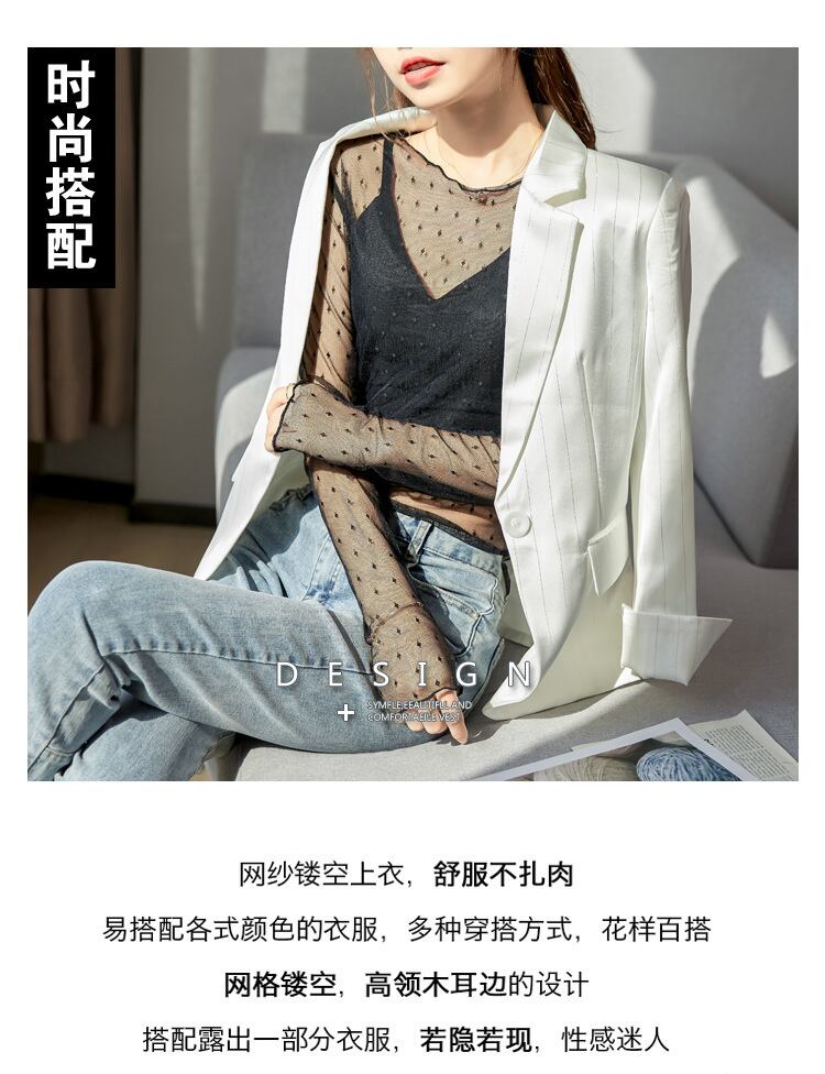 【新作】【送料無料】 リアルのセクシーなスウィートレースレースシャツ2020春秋新バージョンのネットレッドカジュアルネットヤーンボトミングトップ-アリババ 大人ガーリー キュート スプリング 春物 オータム 秋物 12b293400430143