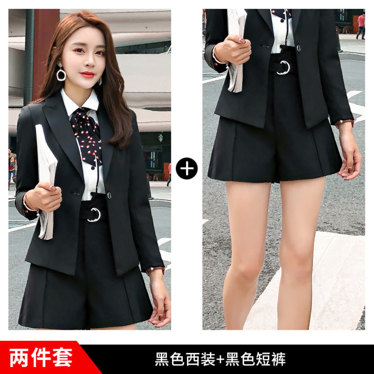 色:黒のスーツ+黒のショートパンツ,黒のスーツ+白のシャツ+黒のショートパンツ