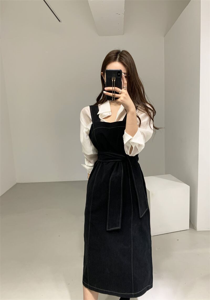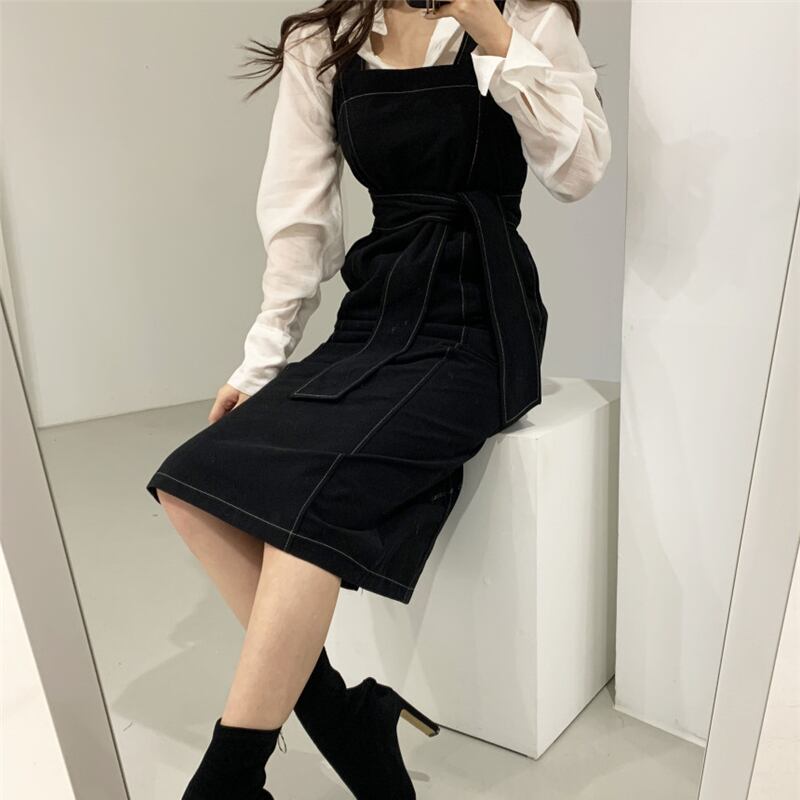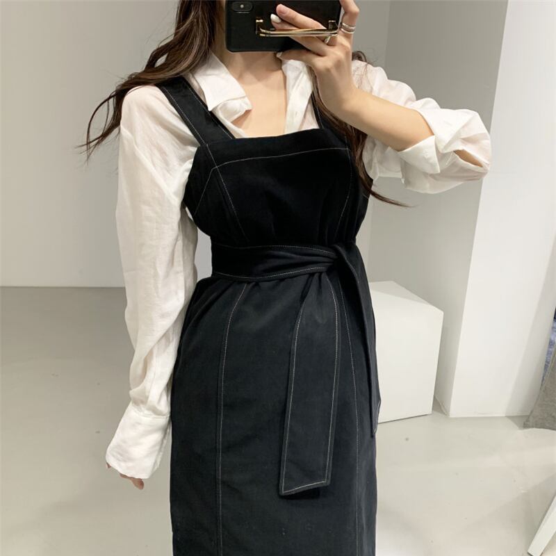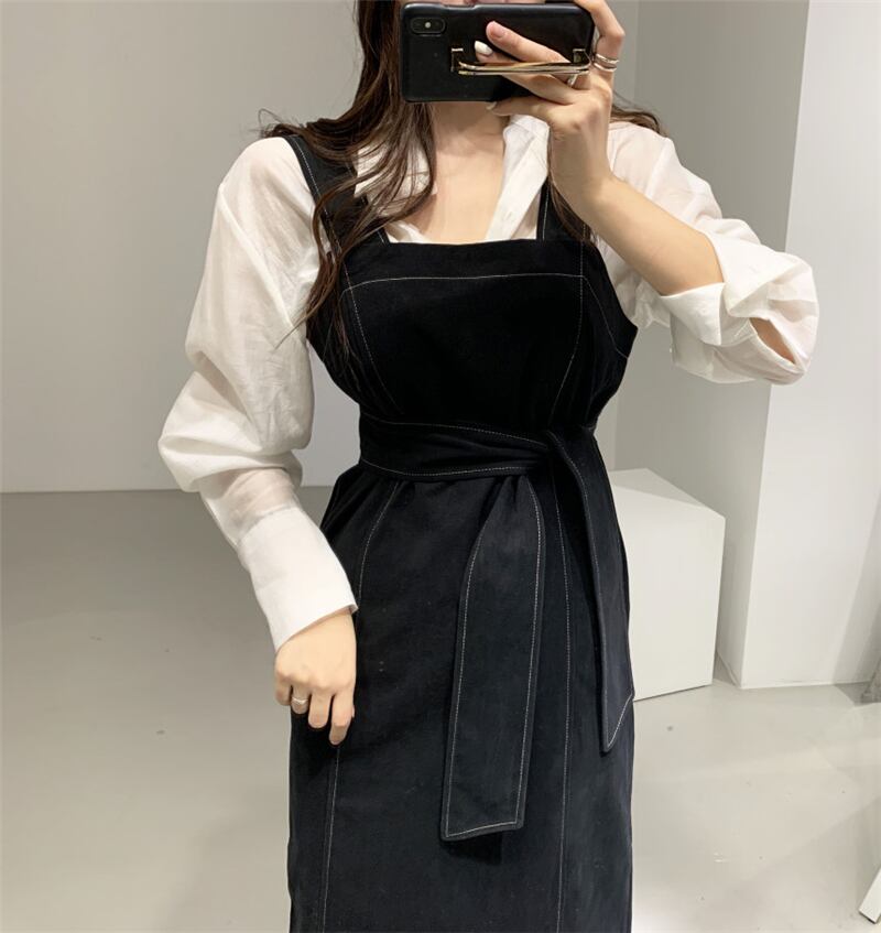 【新作】【送料無料】 BGTEEVERスタイリッシュなストラップドレス女性のブラウスシャツとストラップレスドレス2ピースセットレースアップドレスセット2019 12b110996740574