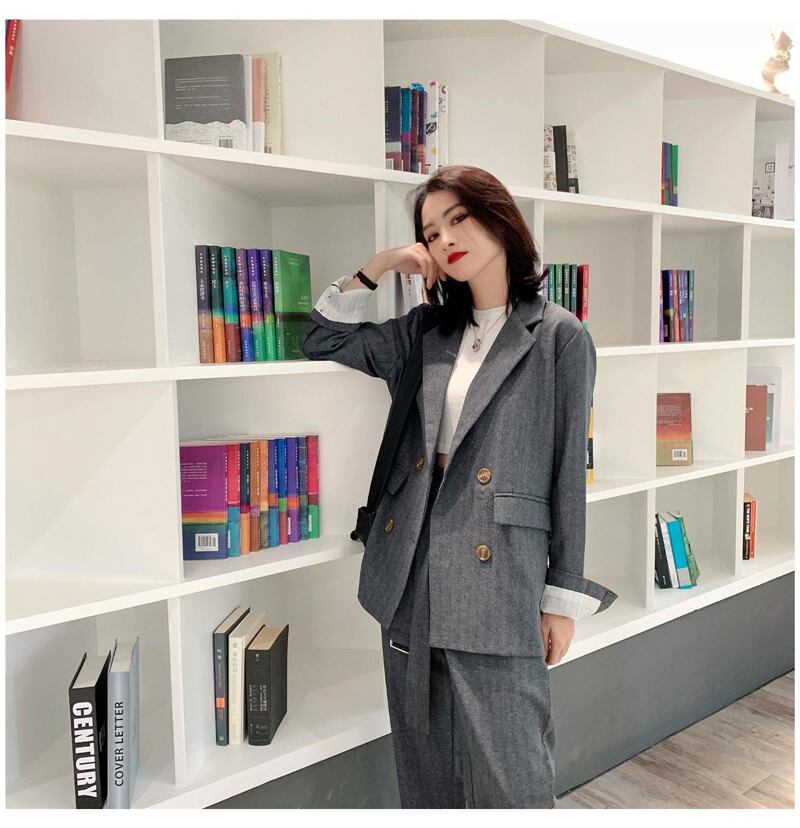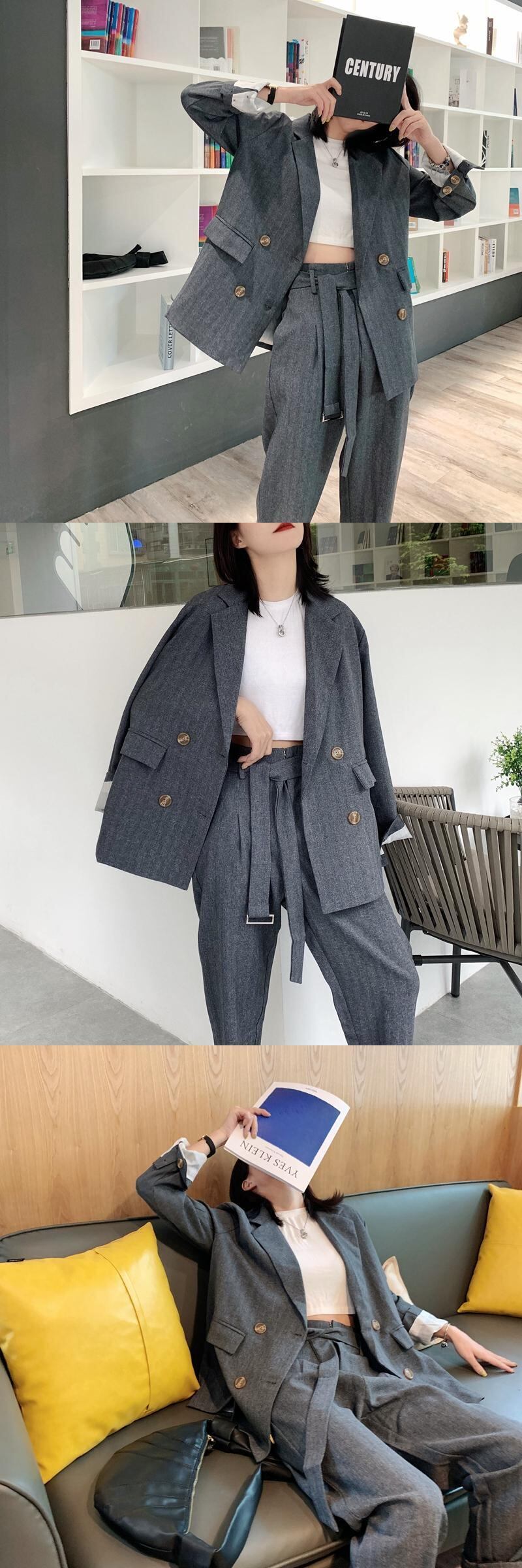 【新作】【送料無料】 BGTEEVERレディース2点セットダブルブレザー&ベルト付きパンツオフィスパンツスーツ2020春のルーズブレザーセット スプリング 春物 ハーネス 会社 学校 通勤や通学にも 12b181135979103