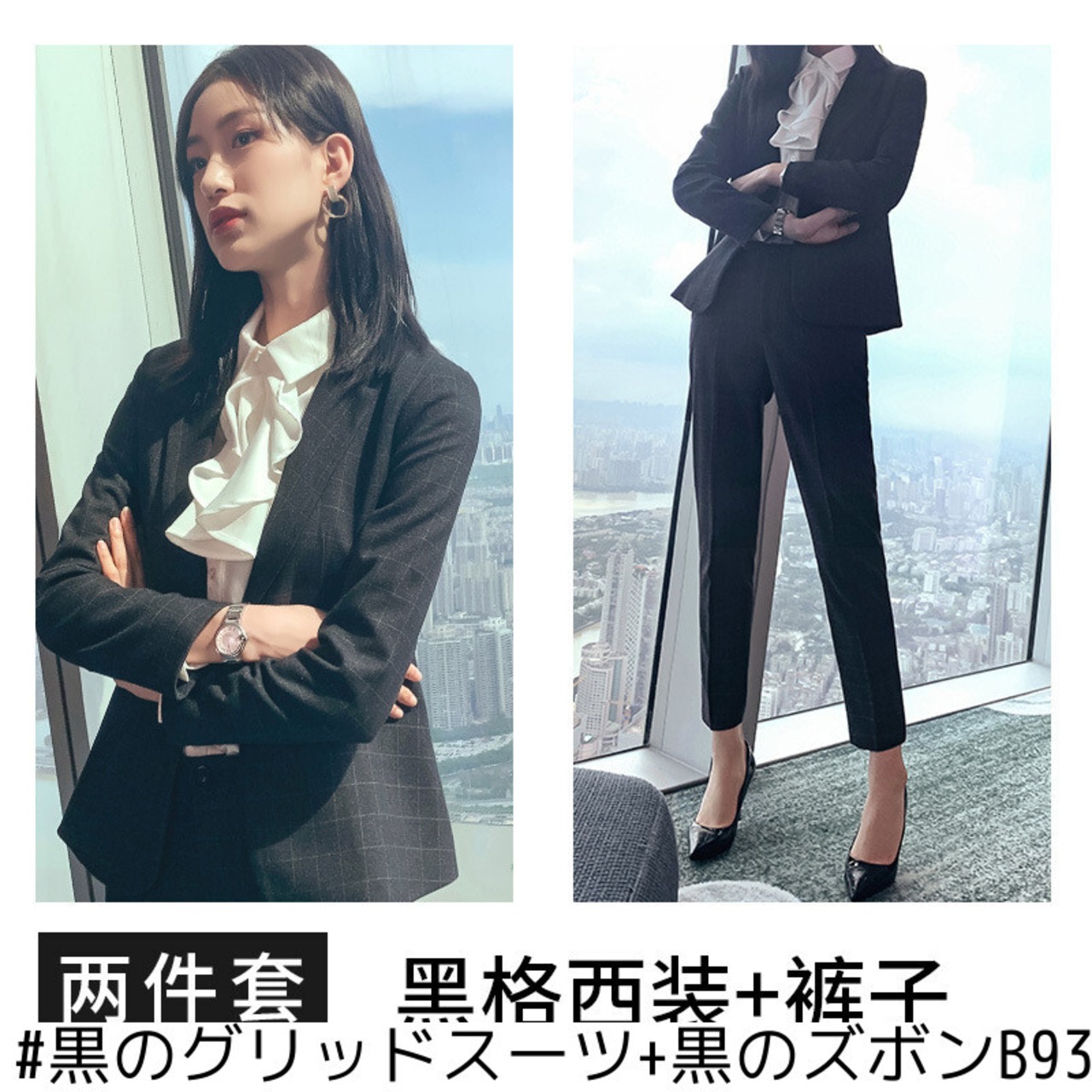 色:黒いグリッド,ランゲ,黒のグリッドスーツ+黒のズボンB93,ランゲスーツ+ブルースカートC27,黒のグリッドスーツ+黒のズボンB93+白のシャツ8022,ランゲスーツ+ブルースカートC27+ホワイトシャツ8022