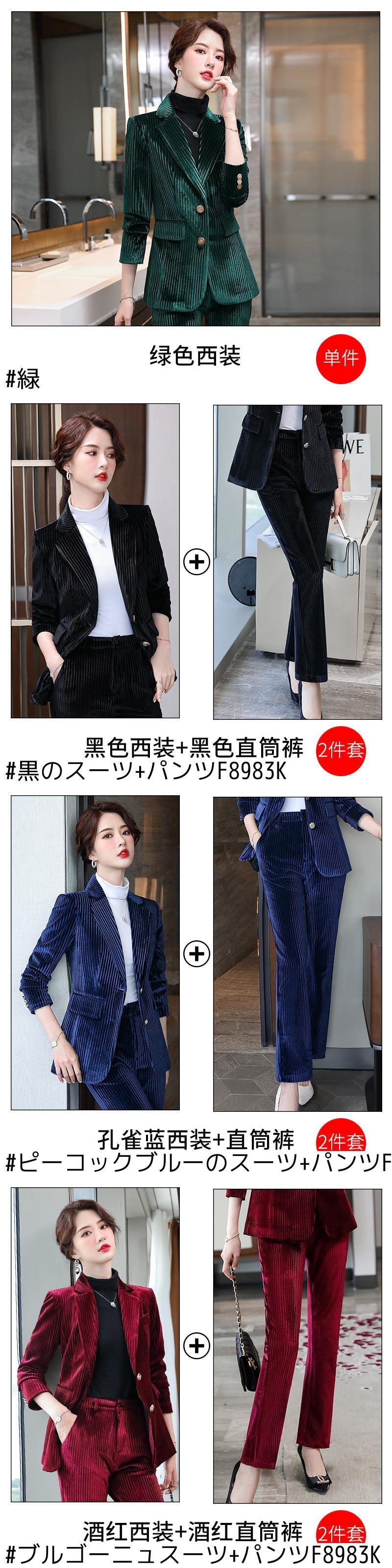 色:黒,ピーコックブルー,ワインレッド,緑,黒のスーツ+パンツF8983K,ピーコックブルーのスーツ+パンツF8983K,ブルゴーニュスーツ+パンツF8983K,グリーンスーツ+パンツF8983K,黒のスーツ+黒のブーツカットパンツF8983K,ピーコックブルースーツ+ブルーブーツカットパンツF8983K,ブルゴーニュスーツ+ブルゴーニュウィーピングパンツF8983K,グリーンスーツ+グリーンブーツカットパンツF8983K