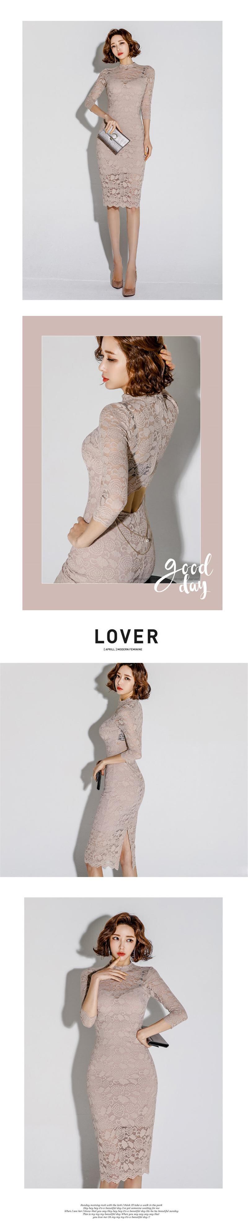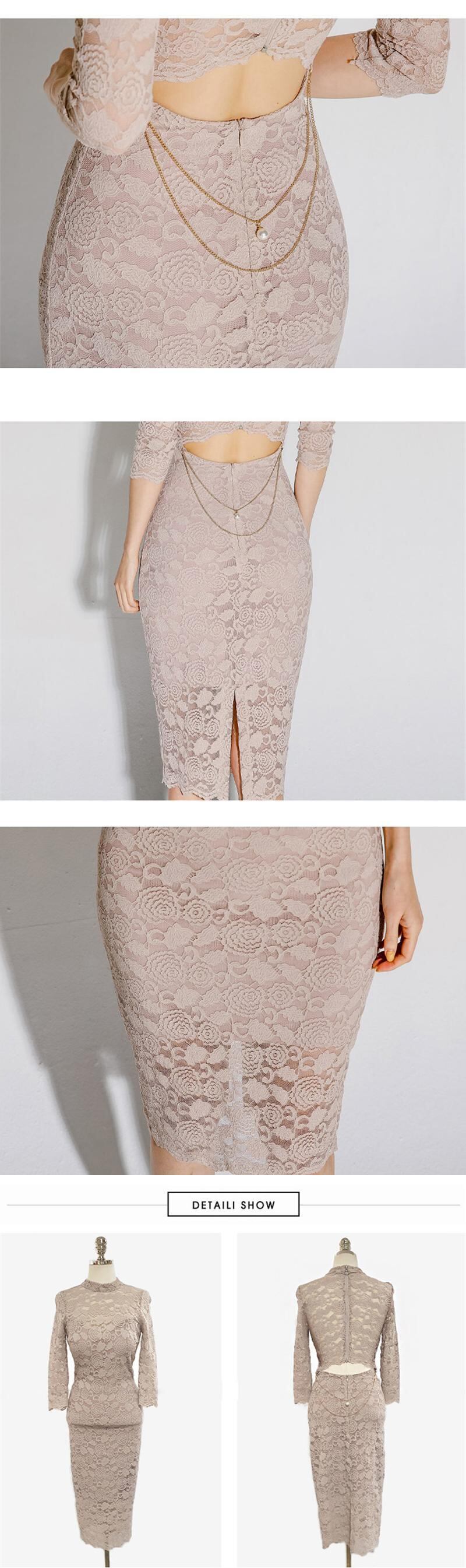 【新作】【送料無料】 BGTEEVER Women Spring Stand Collar Backless Lace Dress See-through Hollow Bodycon Pencil Dress Behind Split Vestidos 2020 レース スプリング 春物 12b161333408853