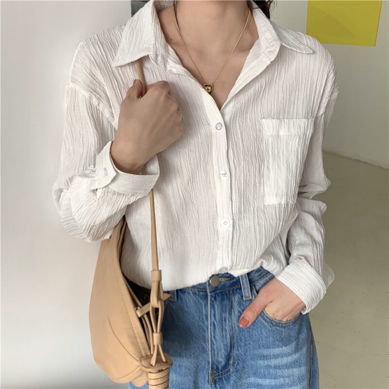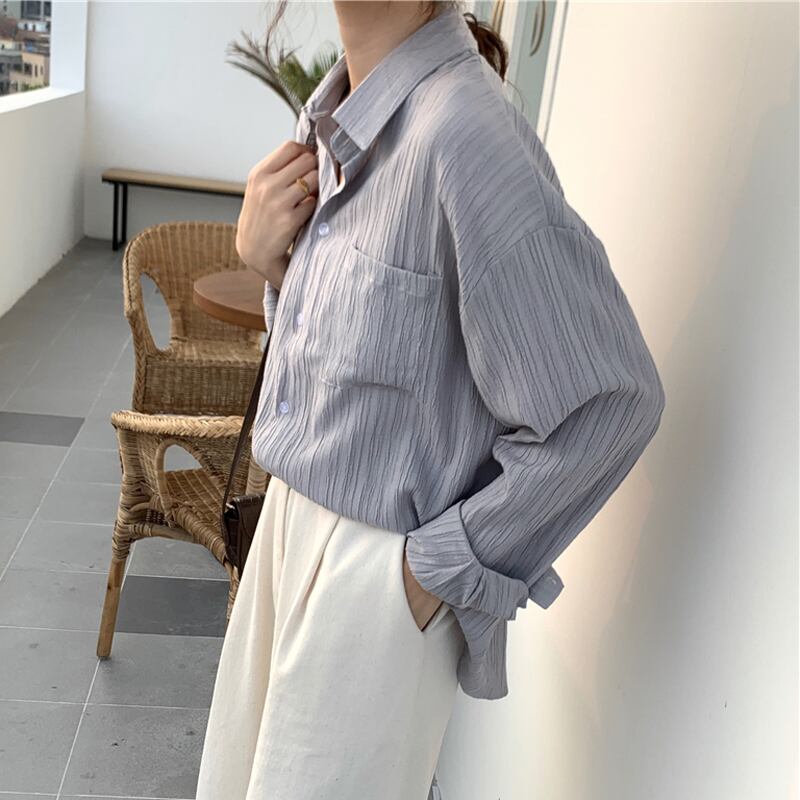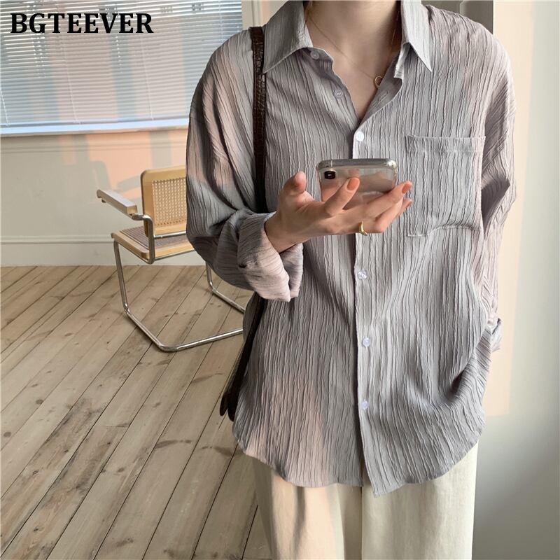 【新作】【送料無料】 BGTEEVERポケットレディースブラウスシャツシングルブレストシャーリングオフィスシャツルーズトップス2020春夏 スプリング 春物 サマー 夏物 会社 学校 通勤や通学にも 12b125500384395