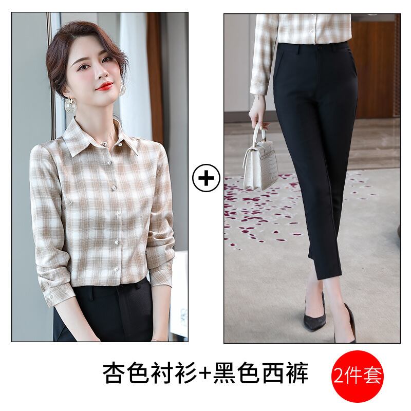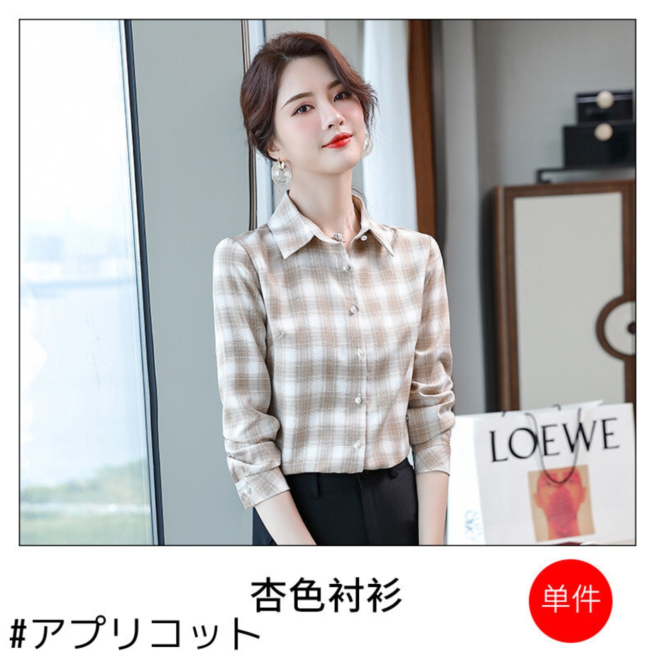 【新作】【送料無料】 リアルのファッションスタイルラペルチェック柄シャツ女性2020年秋冬新デザインセンスニッチ長袖シャツ-アリババ ロング オータム 秋物 ウィンター 冬物 12b269869102840