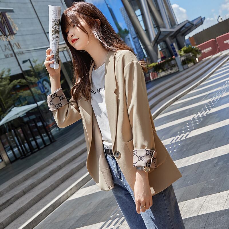 【新作】【送料無料】 リアルのピュアカラースタイルのスーツデザインセンスニッチオールマッチジャケット2020春と秋の新しい小さなスーツジャケットの女性-アリババ スプリング 春物 オータム 秋物 12b221074913707