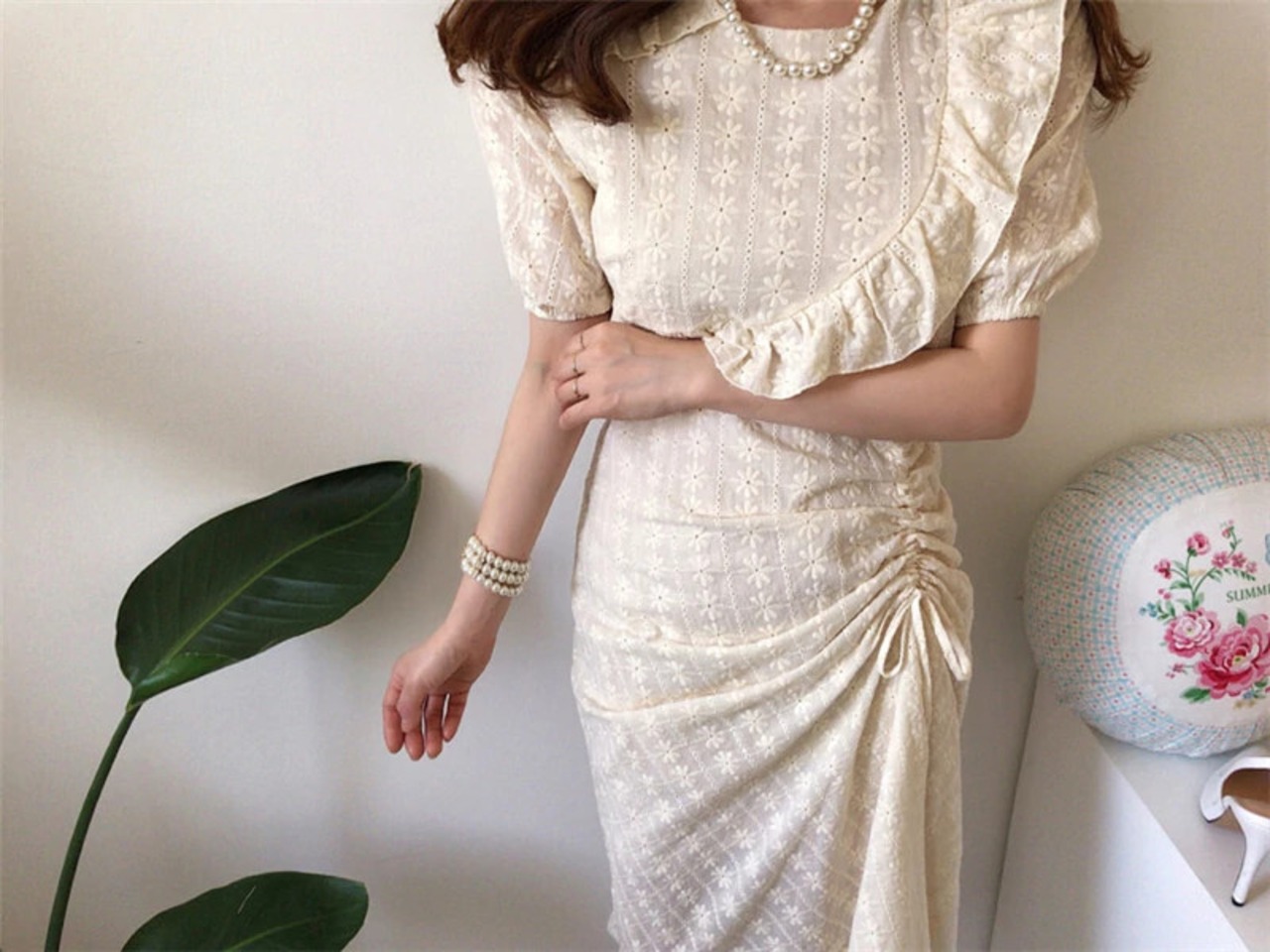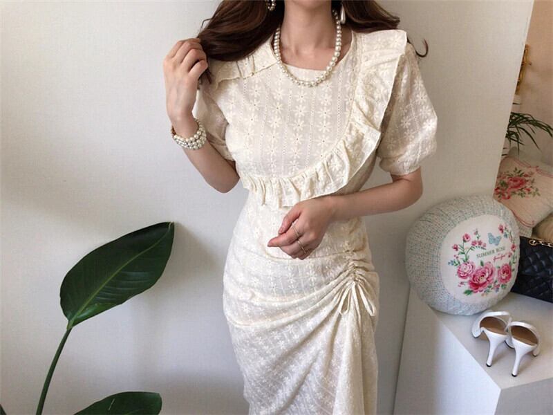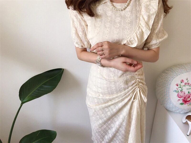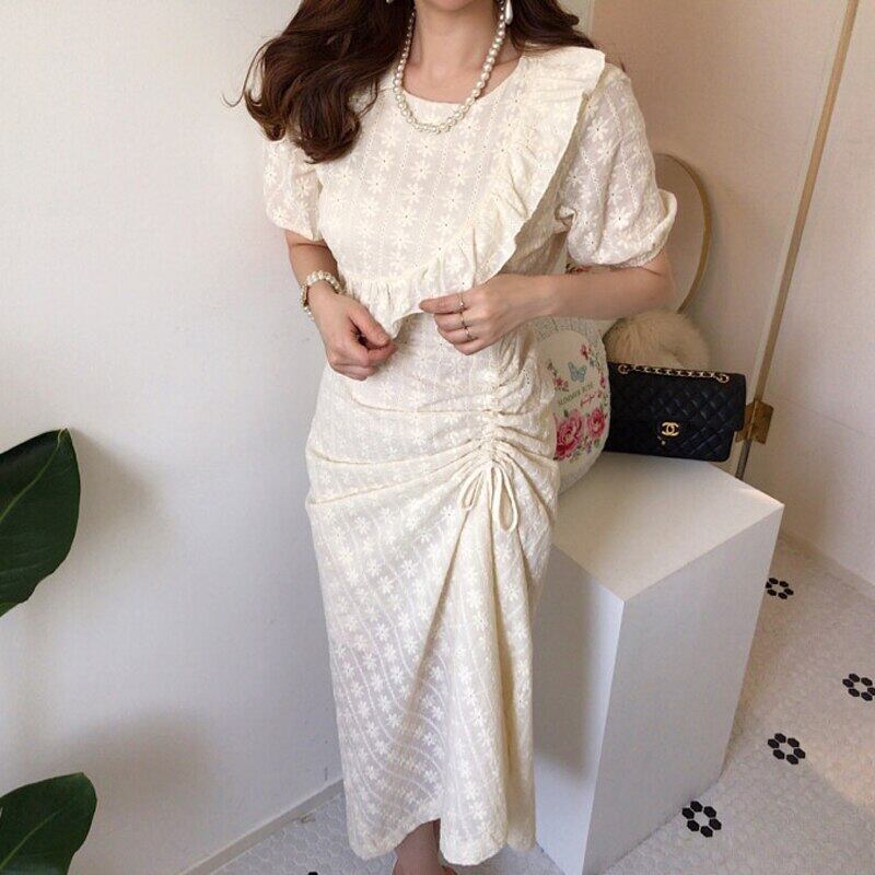 【新作】【送料無料】 BGTEEVERレディースOネックフリルプリントワンピース春夏スリムウエストドローストリングAラインワンピースロングワンピース スプリング 春物 サマー 夏物 12b136975185714