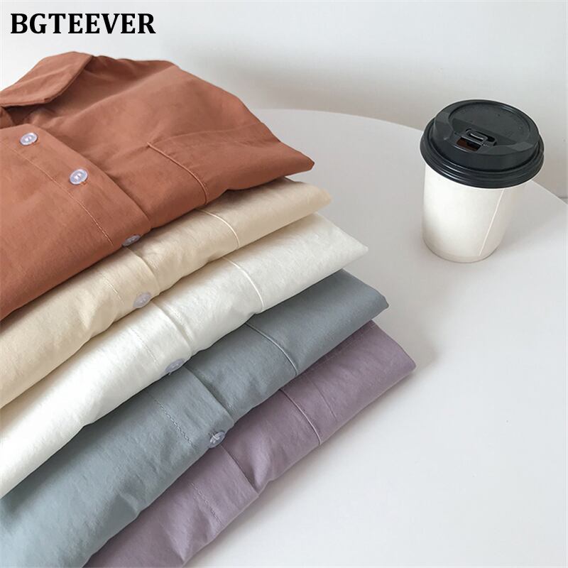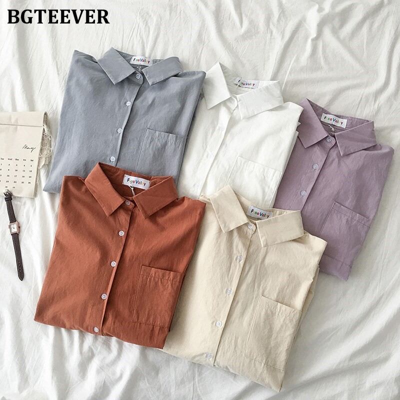 【新作】【送料無料】 BGTEEVERルースウィミンブラウスターンダウンカラーソリッドシャツトップスシングルブレスト長袖シャツ2020夏 ロング サマー 夏物 ソリッドカラー 12b167456830350