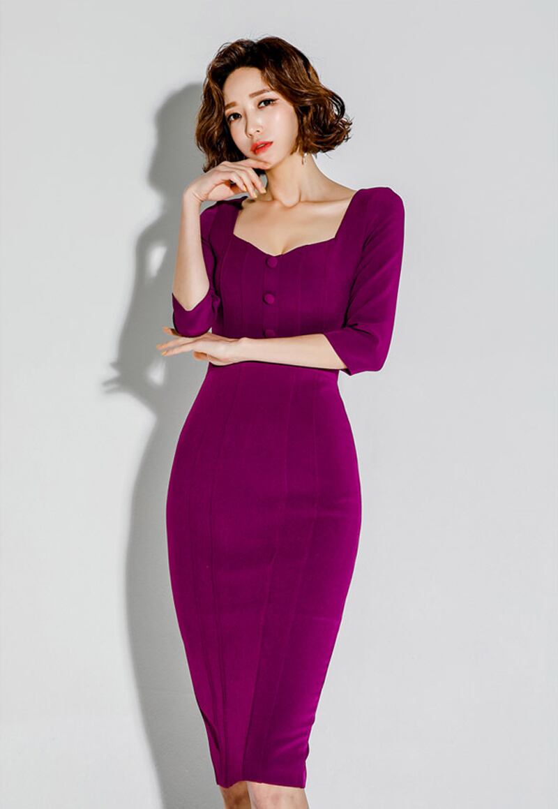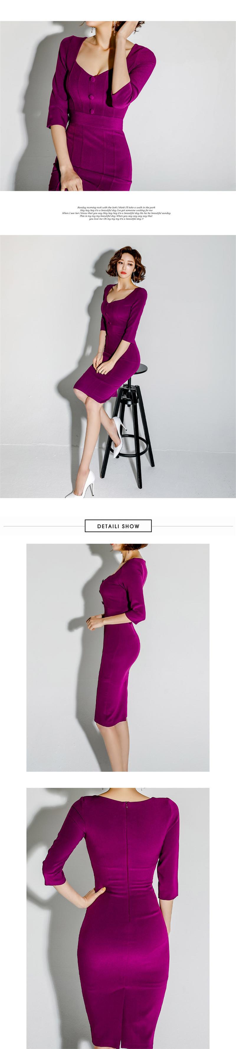 【新作】【送料無料】 BGTEEVERスクエアカラーボタン女性ボディコンドレスオフィスウェアスリムシースドレスビジネス スクウェア 会社 学校 通勤や通学にも 12b164827068957